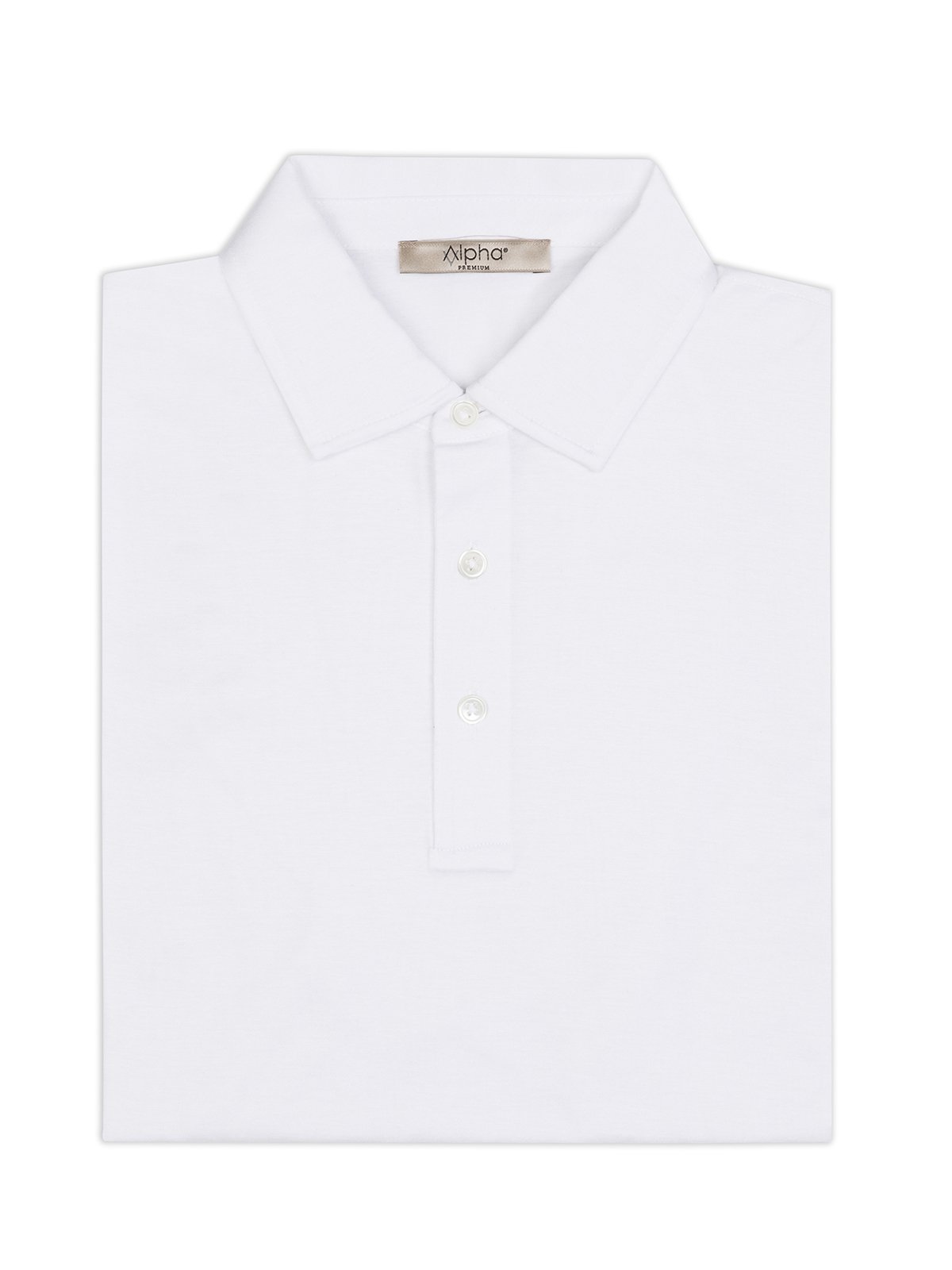 Alphauomo Beyaz Gömlek Yaka İnce Merserize Regular Fit Tişört