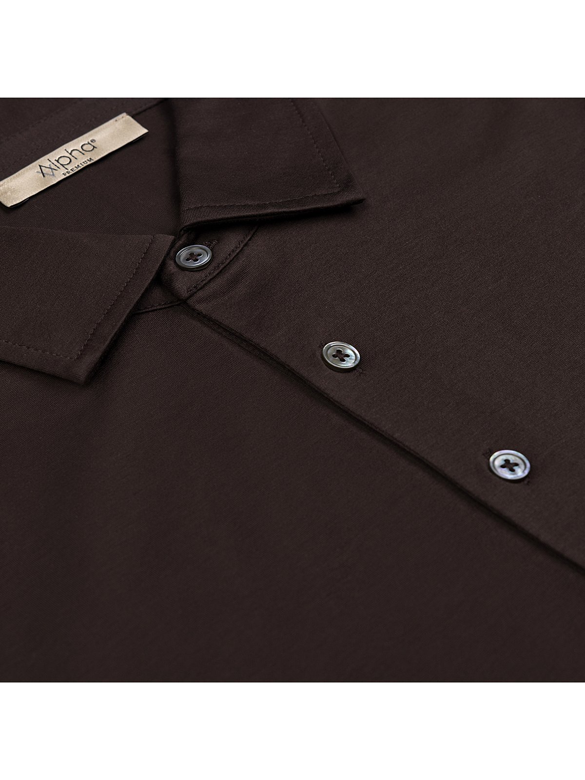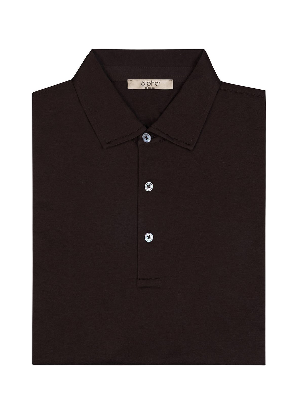 Alphauomo Kahverengi Gömlek Yaka İnce Merserize Regular Fit Tişört