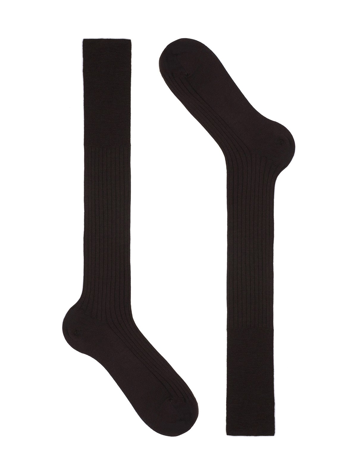 Bresciani Kahverengi İnce Fitilli Uzun Konç Yün Çorap