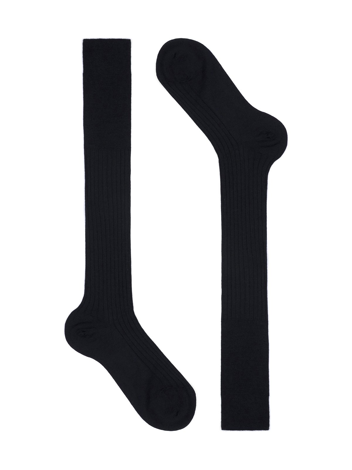 Bresciani Siyah İnce Fitilli Uzun Konç Yün Çorap