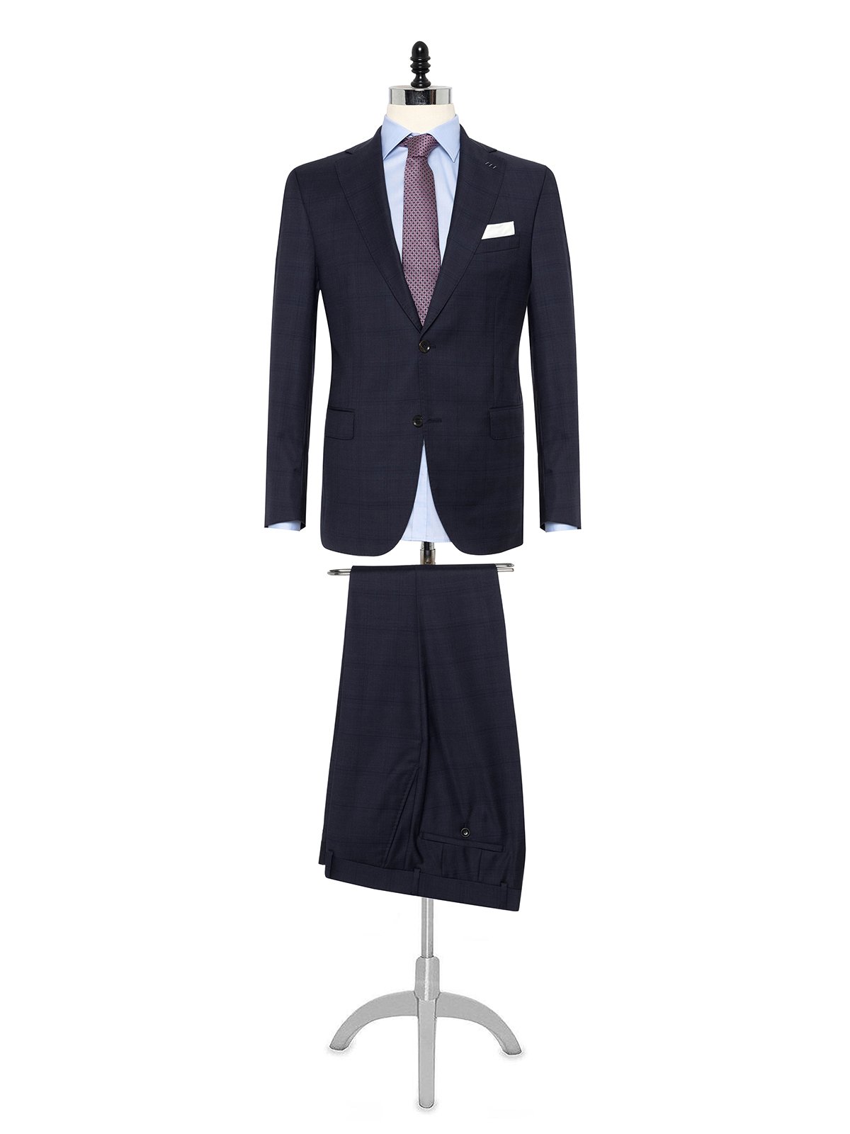 Carl Gross Cerruti Süper 130'S Lacivert Ekoseli Yün Takım ElbiseTKM ELBISE CG*SILAS-WARNER*52-118N3/63%100 Yün