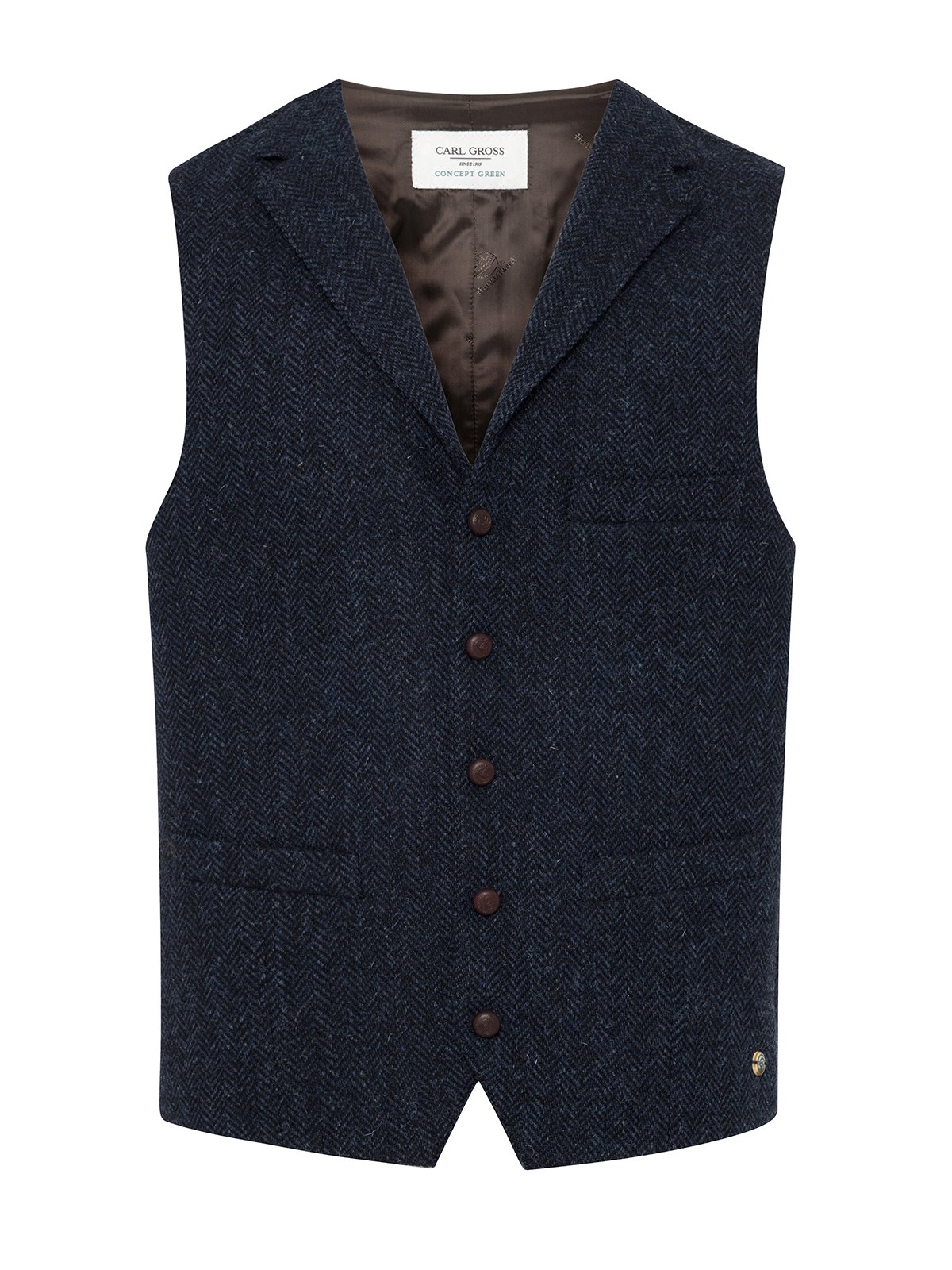 Carl Gross Harris Tweed Lacivert Mavi Balıksırtı Yün Yelek