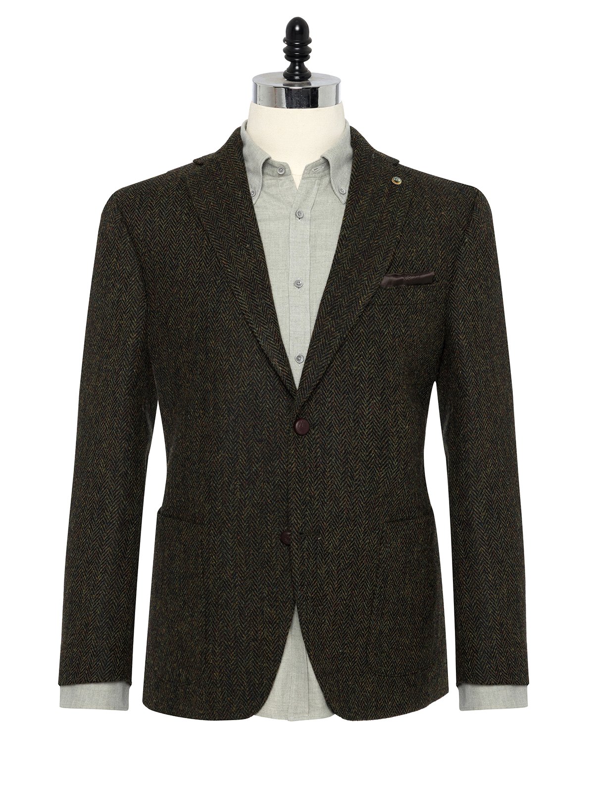 Carl Gross Harris Tweed Yeşil Taba Balıksırtı Kolu Peçli Yün Ceket