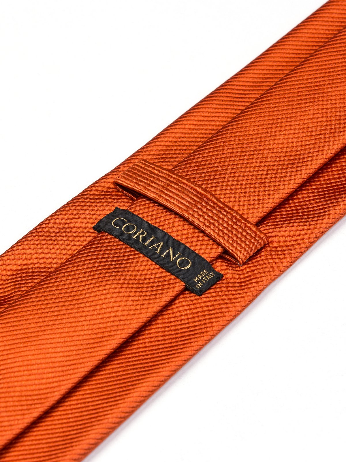 Coriano Turuncu İnce Çizgili Dokulu İtalyan Kravat