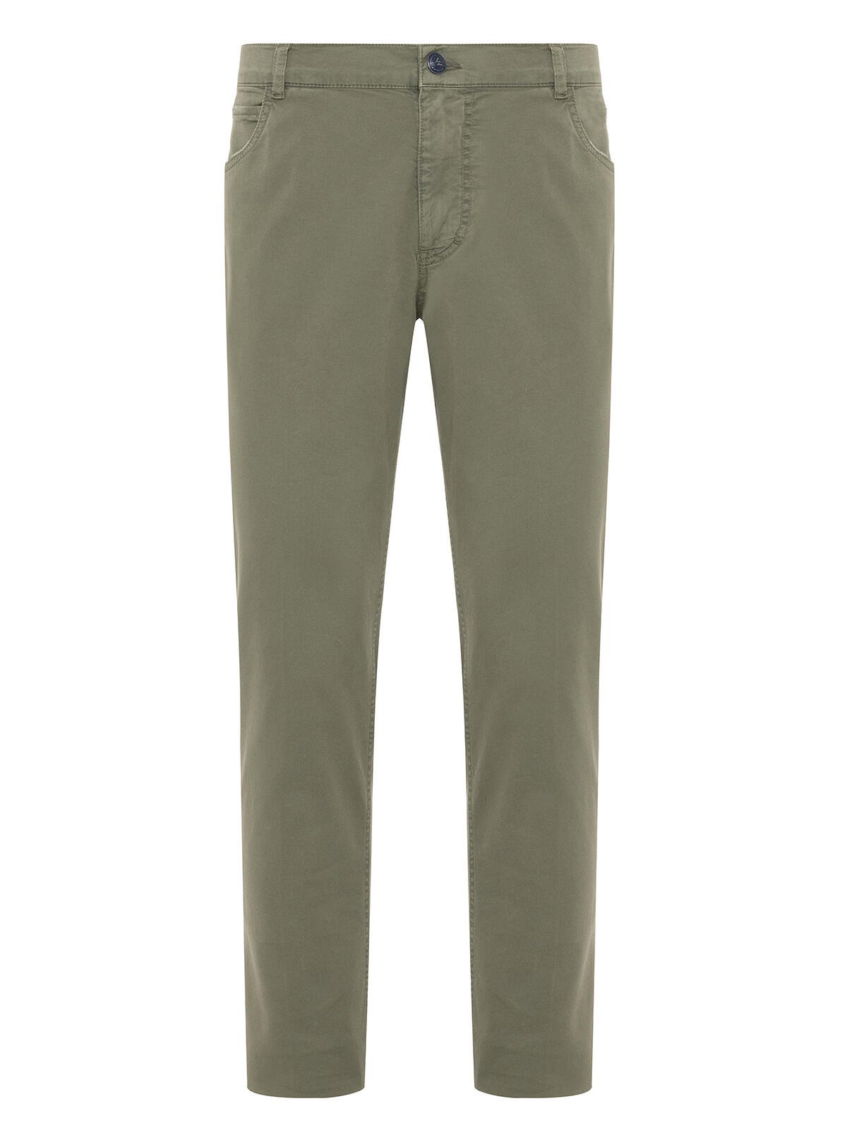 These green trousers of the 40WEFT brand provide cool and comfortable use in summer with their thin twill texture. Made from a blend of 97% cotton and 3% elastane, these trousers offer flexibility and comfort. Offering both elegance and comfort with their regular fit cut, the trousers also increase functionality with their 5-pocket design. They are a perfect choice for both daily use and special events.