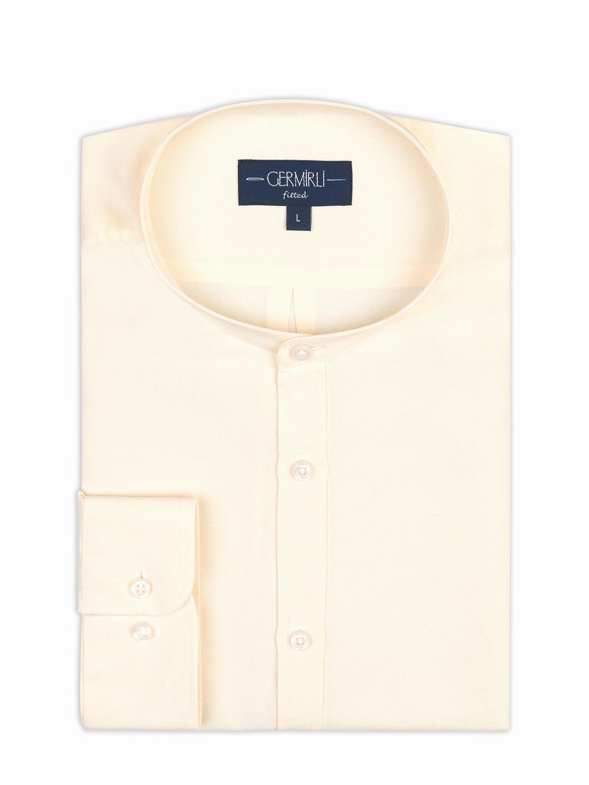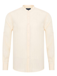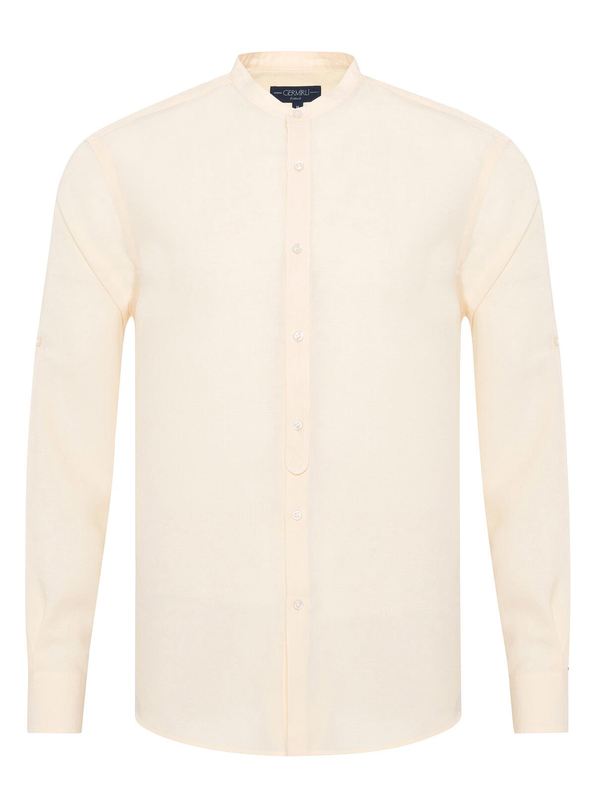 Germirli Cream Tailor-Fit Men's Mandarin Collar Lyocell Linen Shirt