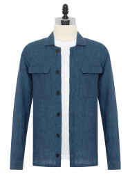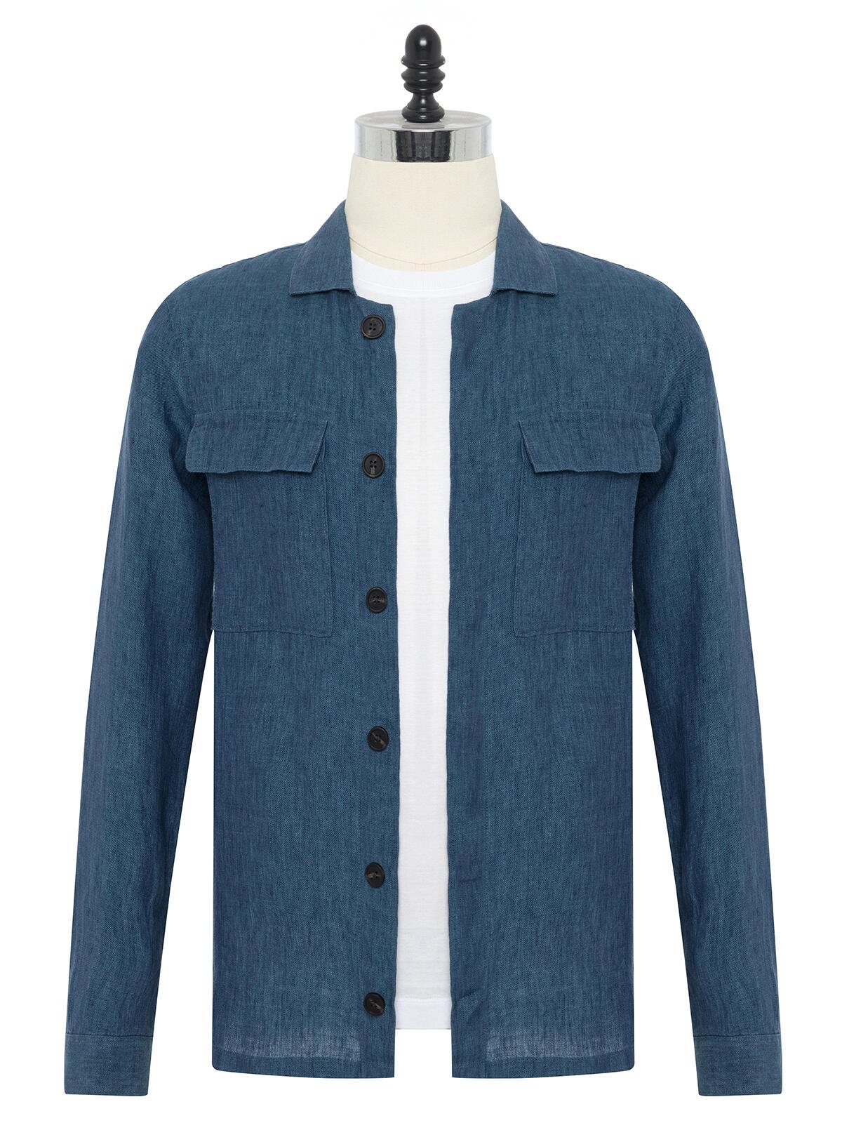 Germirli Indigo Blue Hidden Button Delave Linen Tailor Fit Jacket Shirt