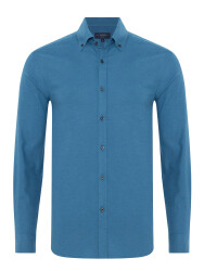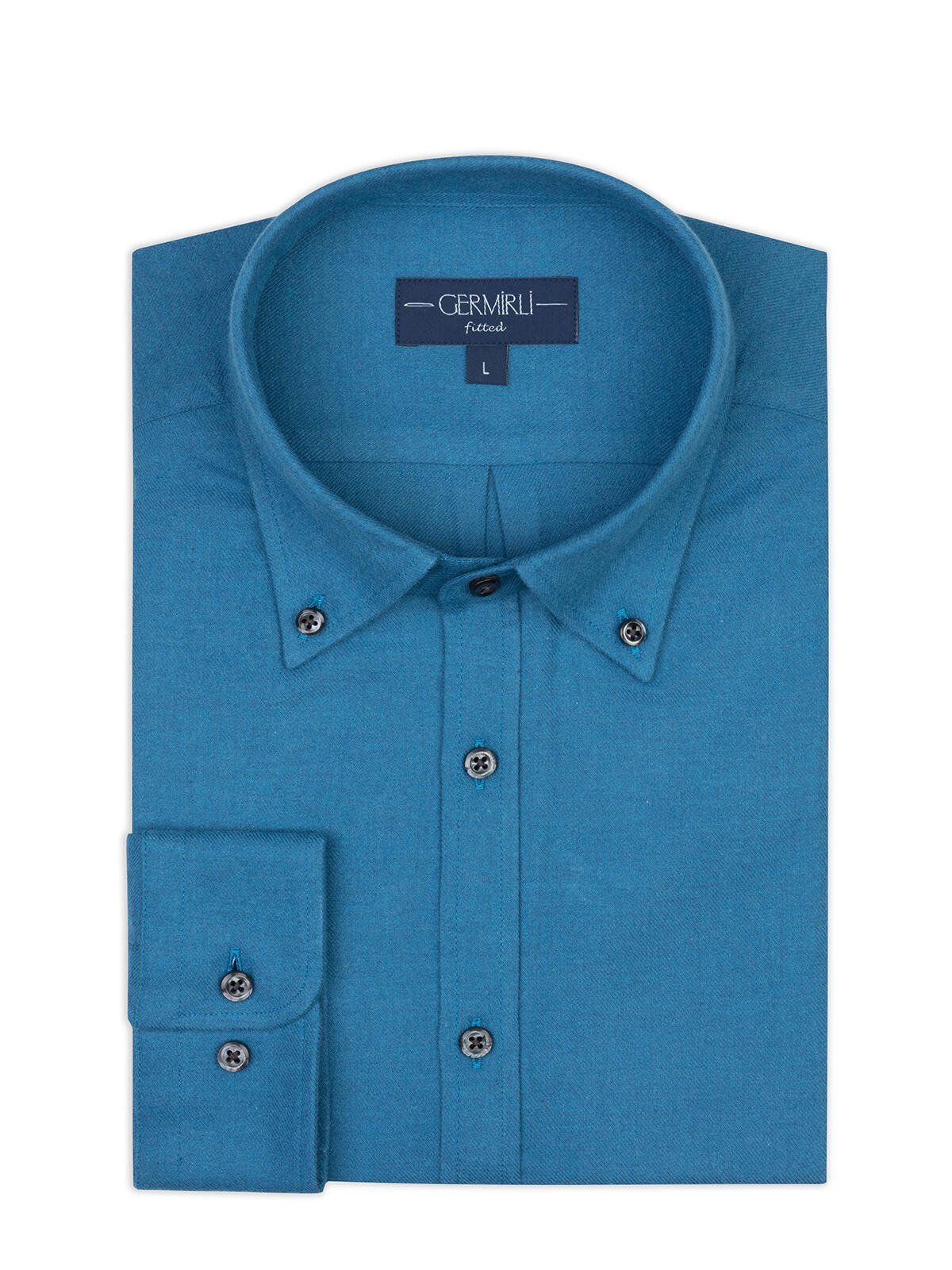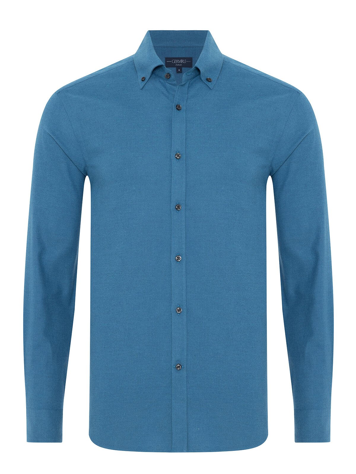 Germirli Dark Blue Plain Tailor Fit Relaxed Fit Button-Down Collar Albini Flannel Shirt