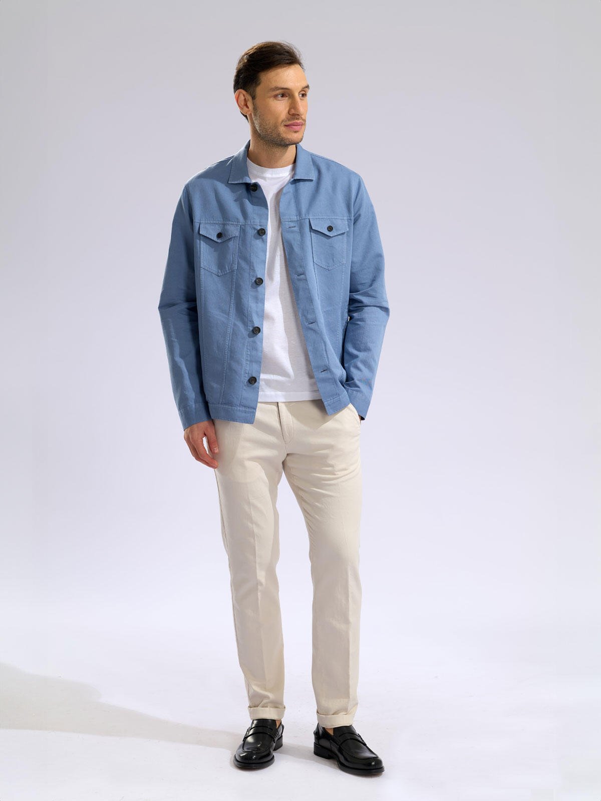 Germirli Elemental Blue Vintage Fillet Pocket Cotton Linen Jacket Shirt