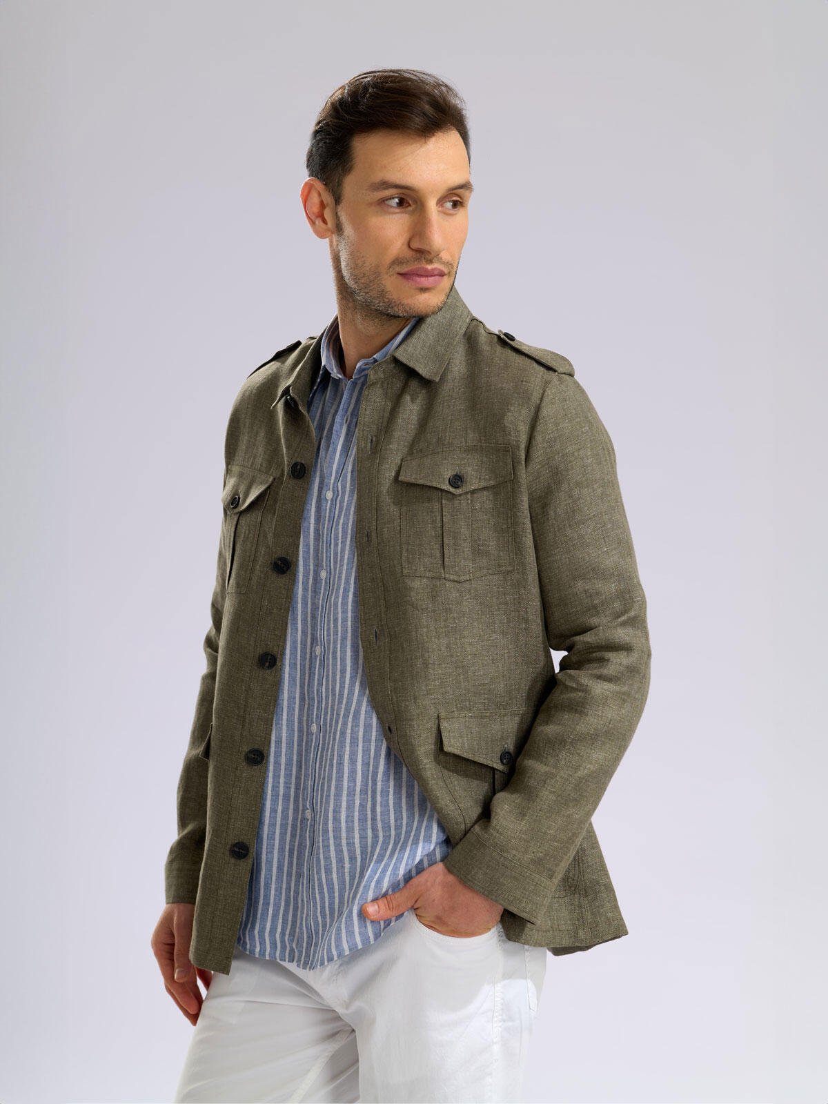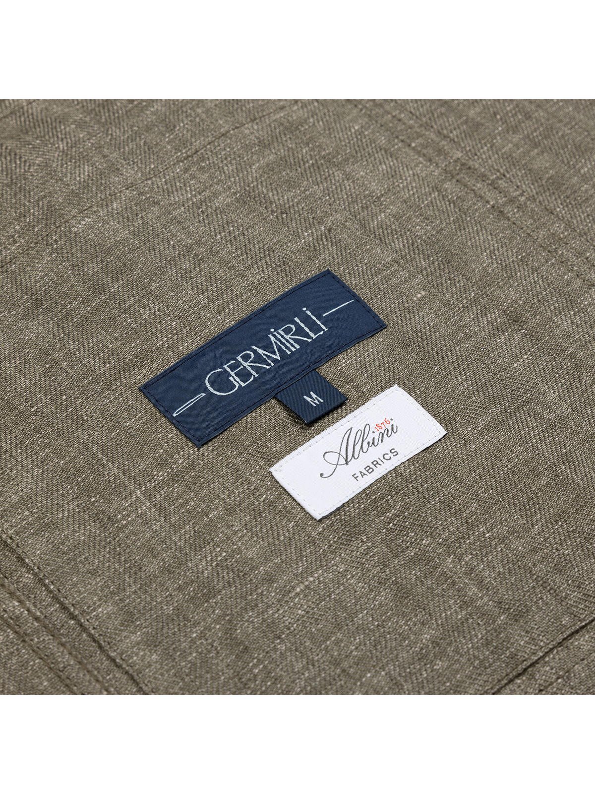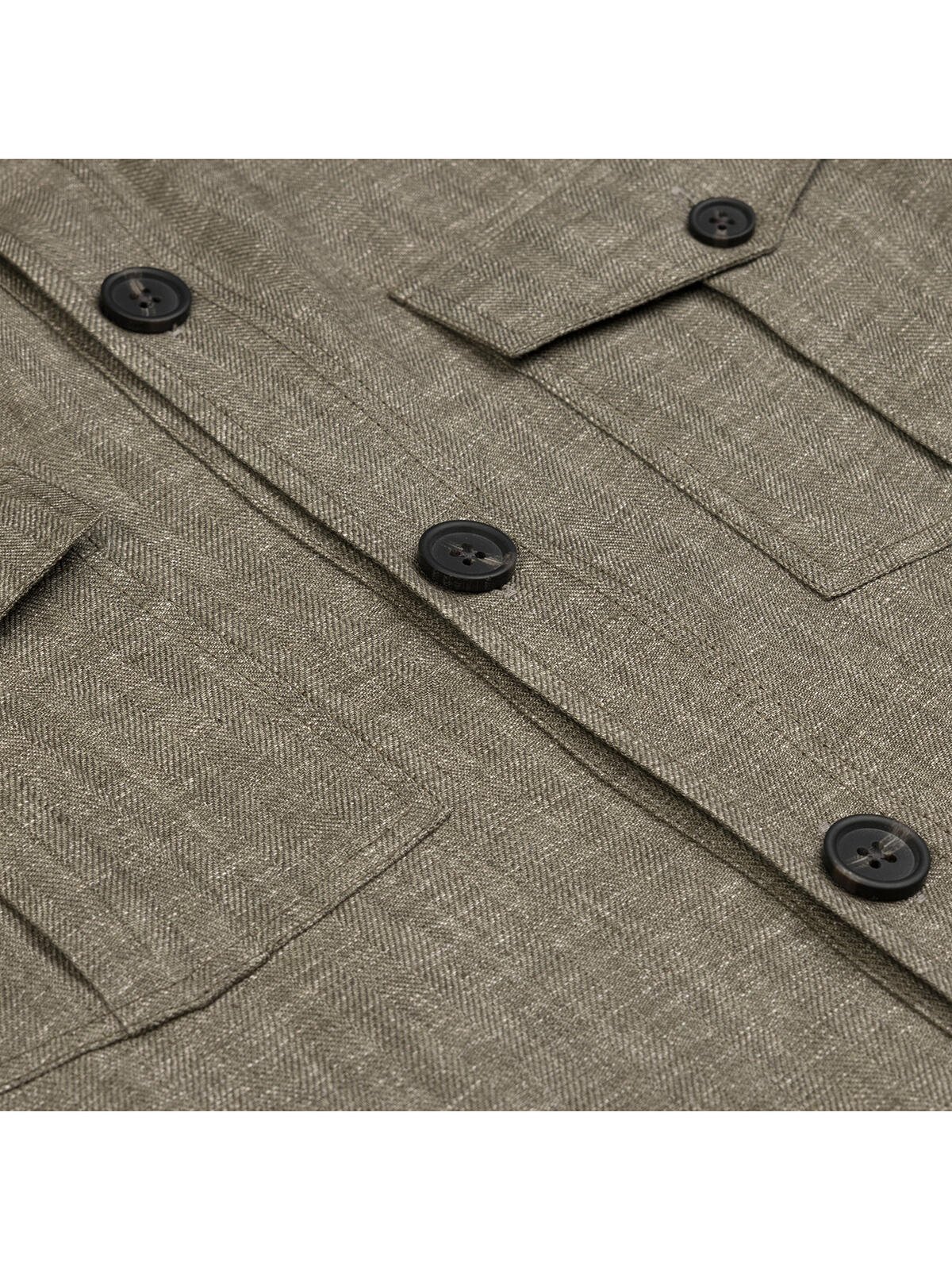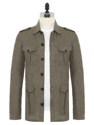 Germirli Khaki Herringbone Texture Tailor Fit Delave Linen Safari Jacket Shirt