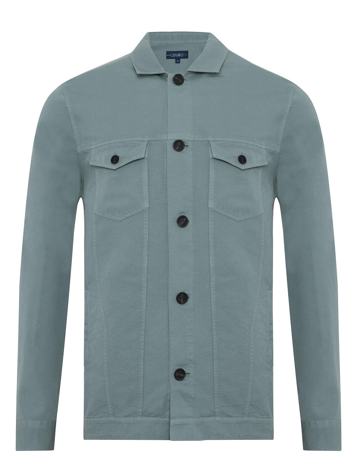 Germirli Mineral Green Vintage Fillet Pocket Cotton Linen Jacket Shirt