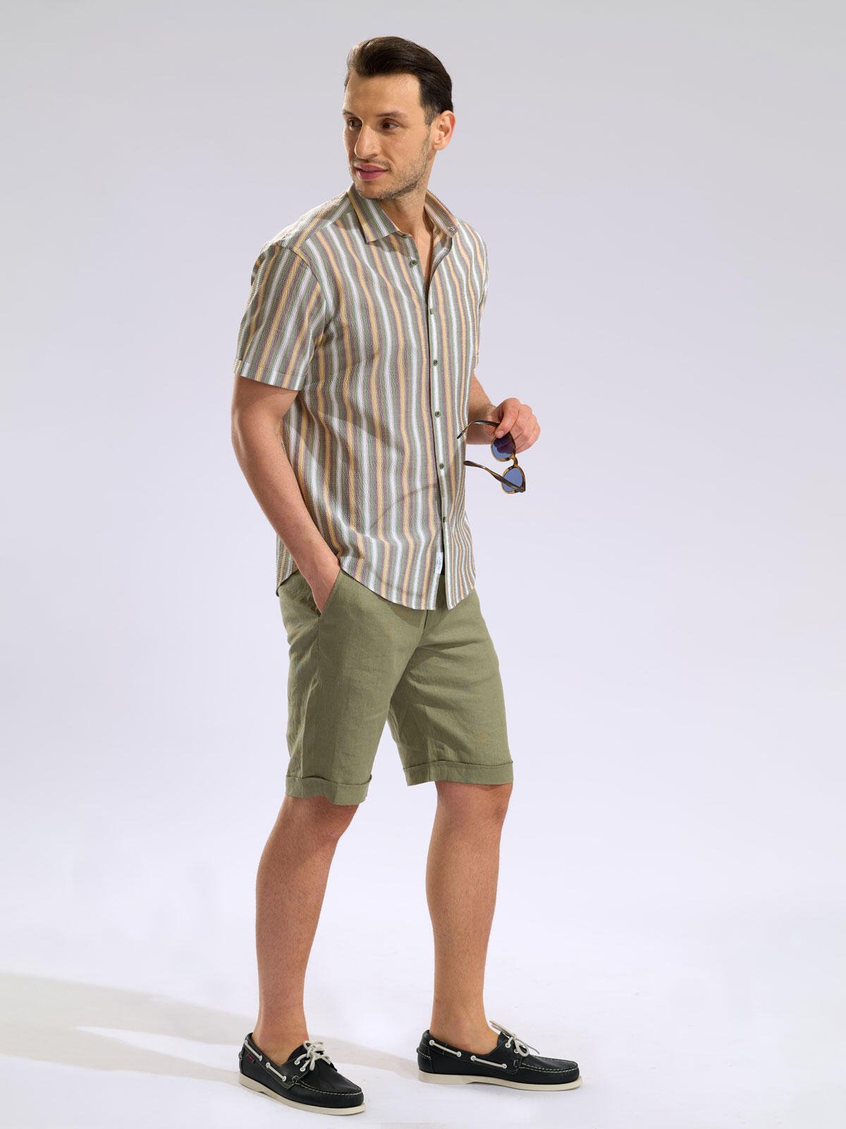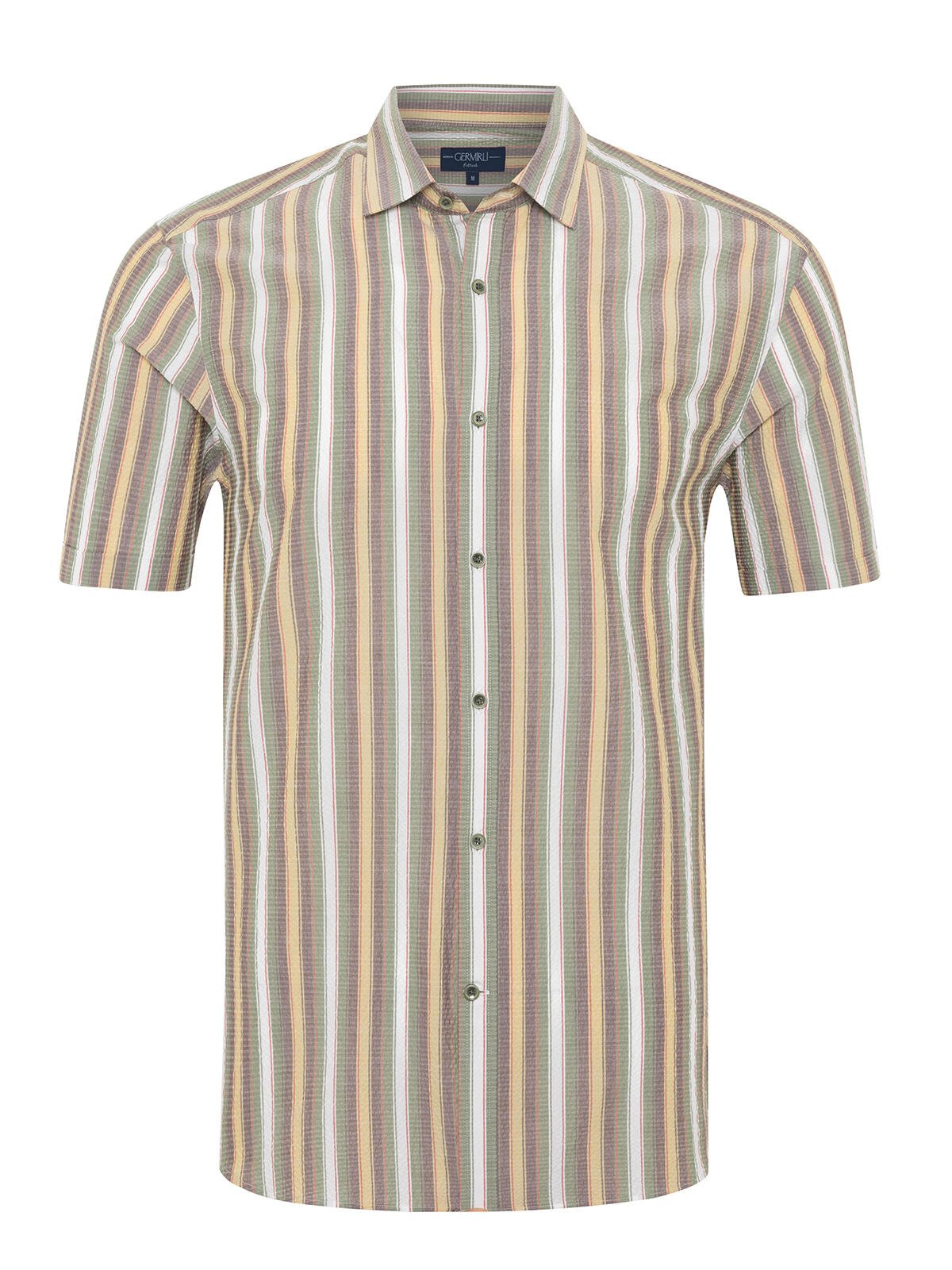 Germirli Multicolored Striped Tailor Fit Soft Collar Seersucker Men's Short Sleeve Cotton Shirt