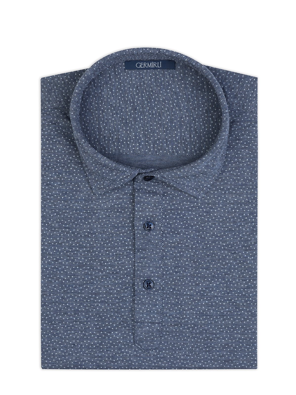 Germirli Navy Blue Piquet Patterned Shirt Collar Regular Fit T-Shirt