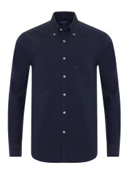 Stretchy Navy Blue Tailor Fit Relaxed Fit Button-Down Collar Sport Oxford Organic Cotton Shirt