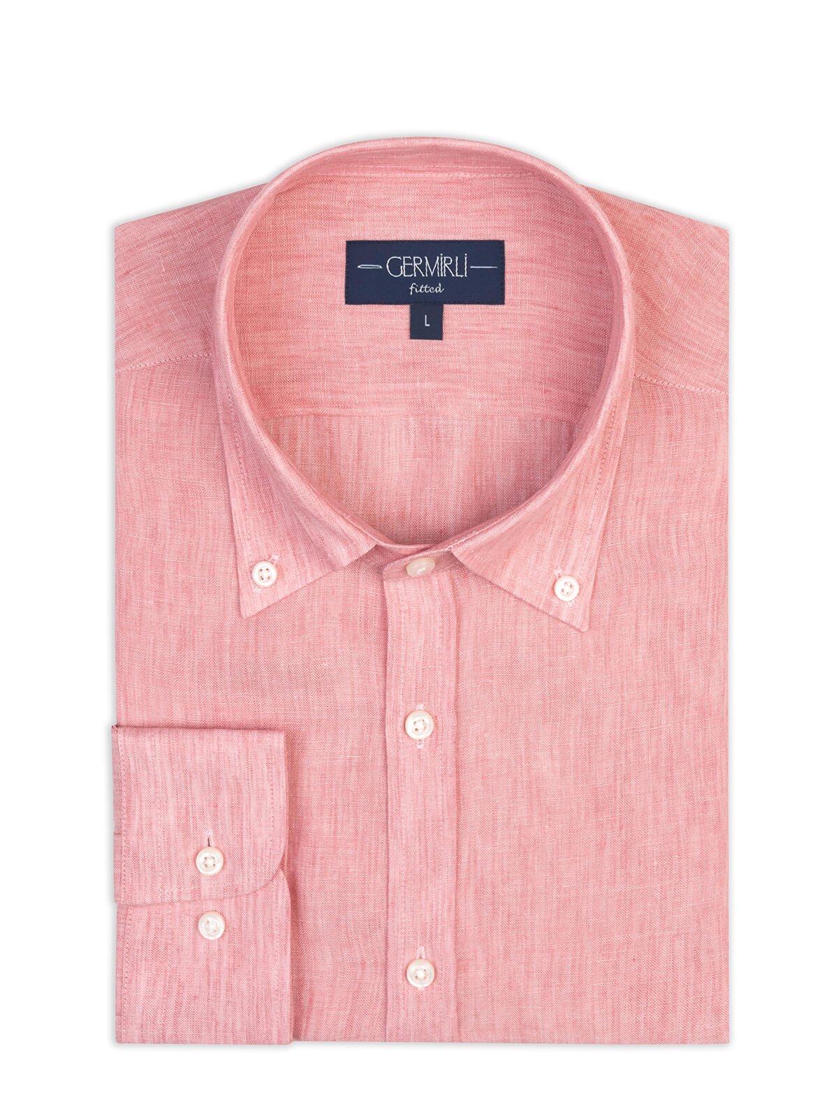 Germirli Pink Tailor Fit Button-Down Collar Albini Linen Shirt
