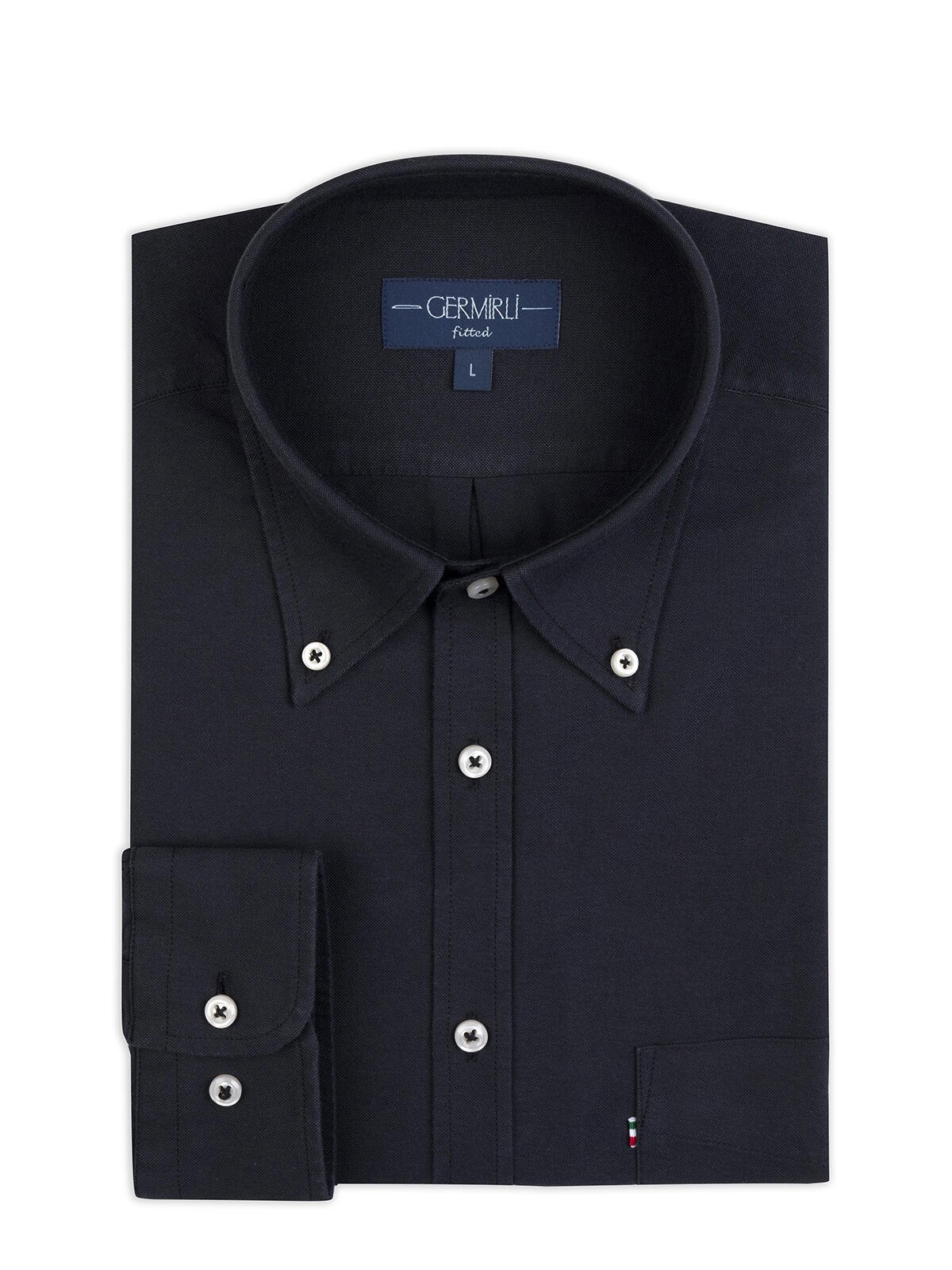 Stretchy Sport Oxford Button-down Collar Black Single Pocket Cotton Shirt