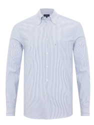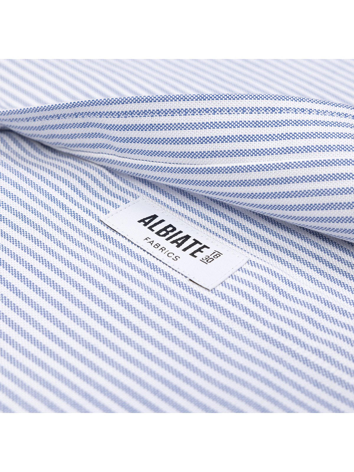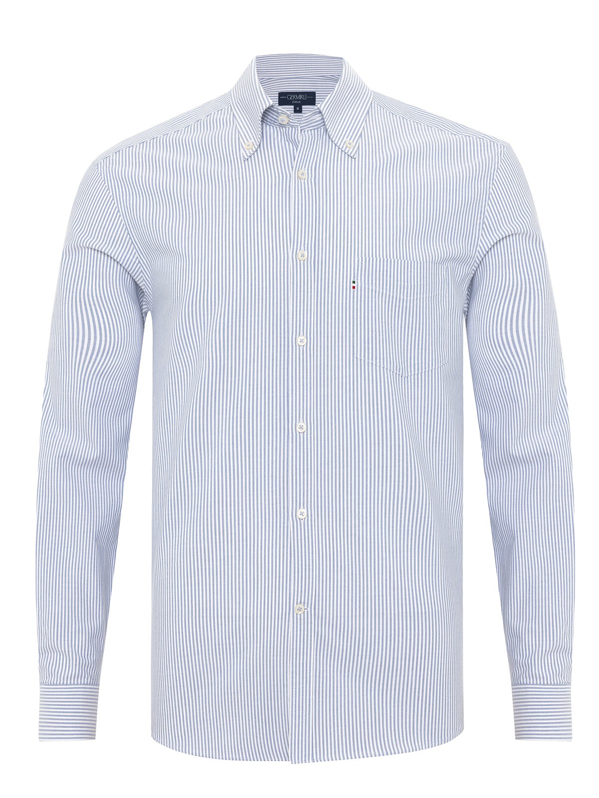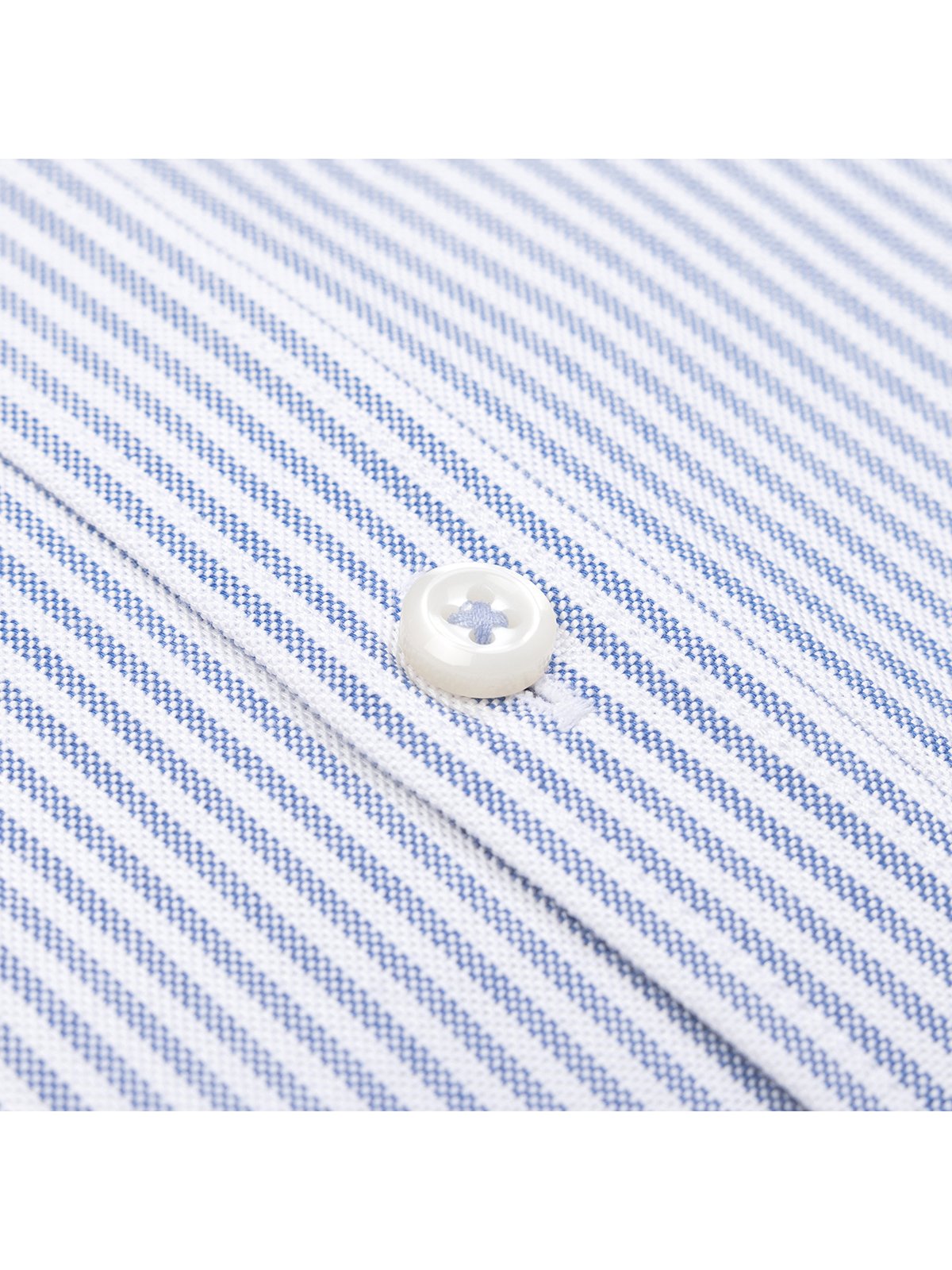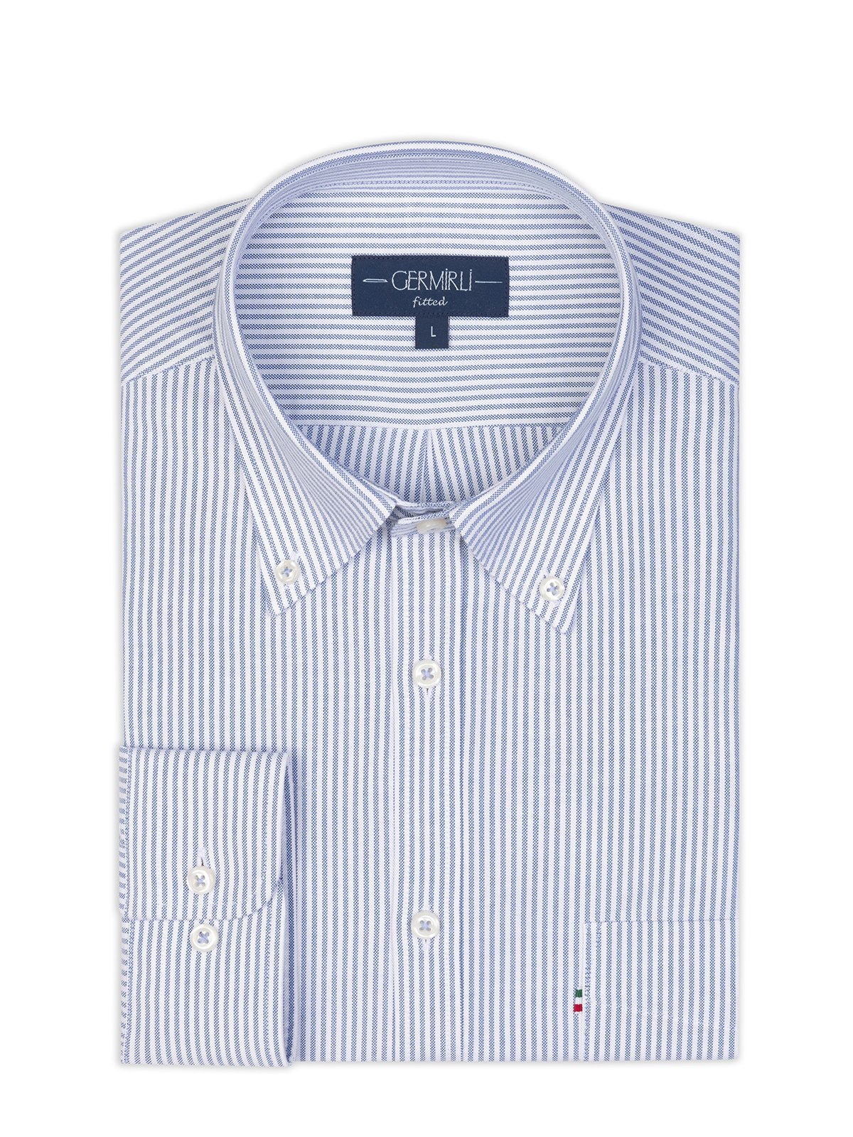 Germirli White Blue Striped Albiate Button-Down Collar Pocket Tailor Fit Sport Oxford Shirt