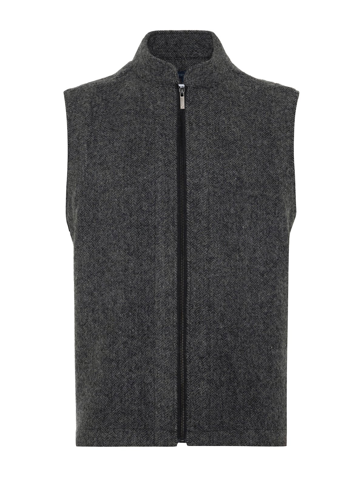 Carl Gross Harris Tweed Gri Ekru Kaz Ayağı Yün Yelek