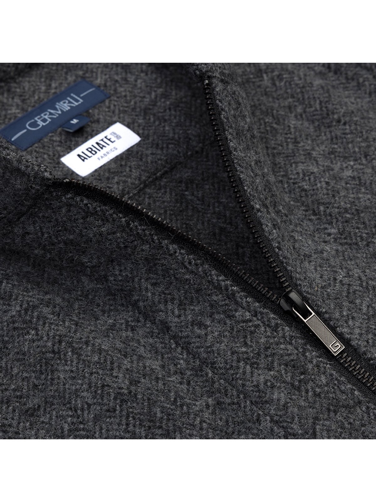 Germirli Albiate Gri Balıksırtı Desen Fermuarlı Rahat Kalıp Yünlü Yelek