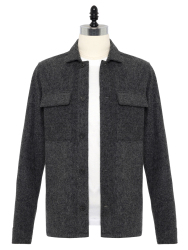 Germirli Albiate Gri Balıksırtı Desen Utility Yünlü Ceket Gömlek
