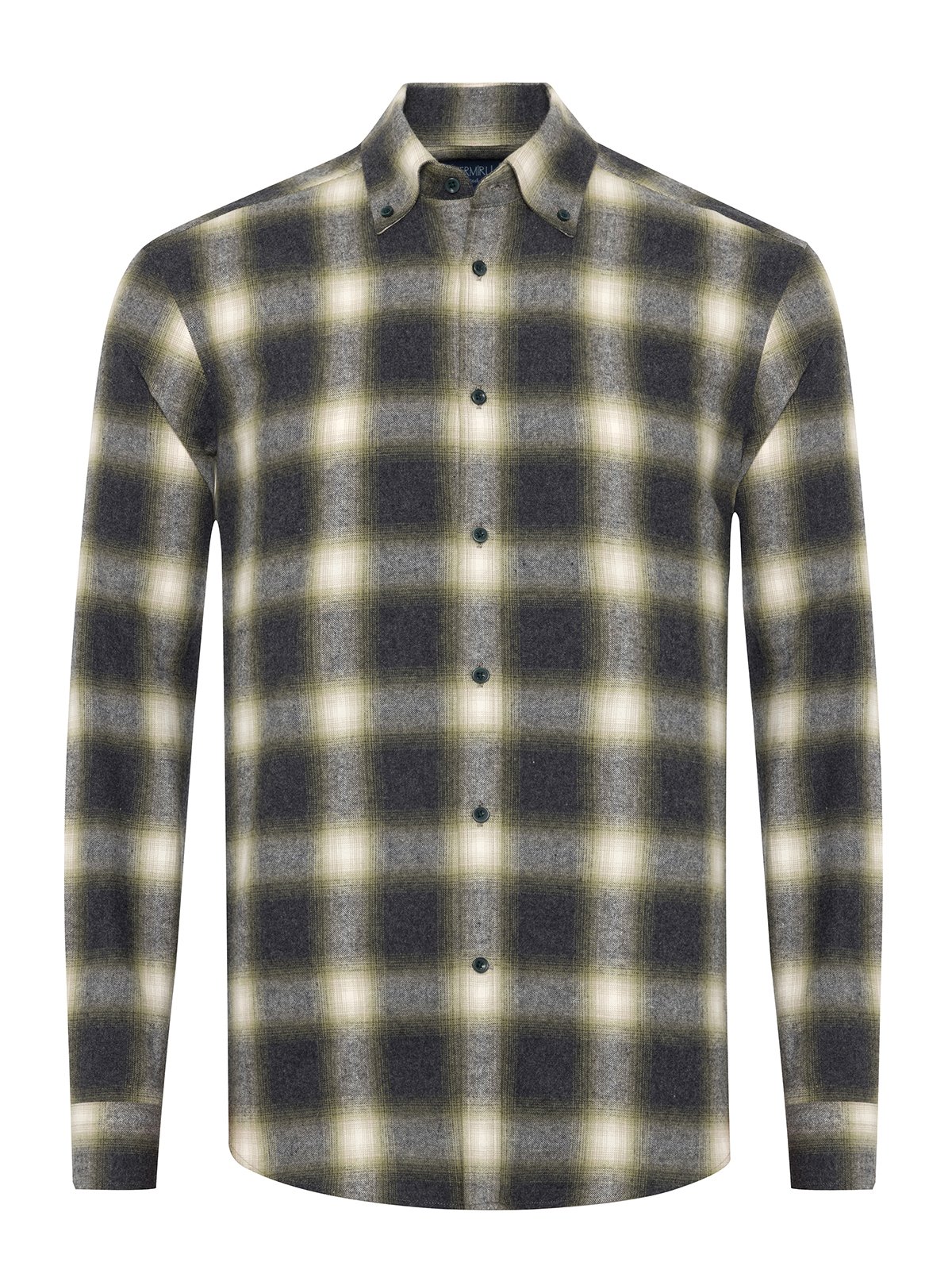 Germirli Albini Antrasit Yeşil Ekoseli Flanel Düğmeli Yaka Tailor Fit Pamuk Oduncu Gömlek