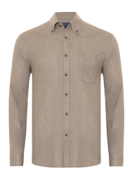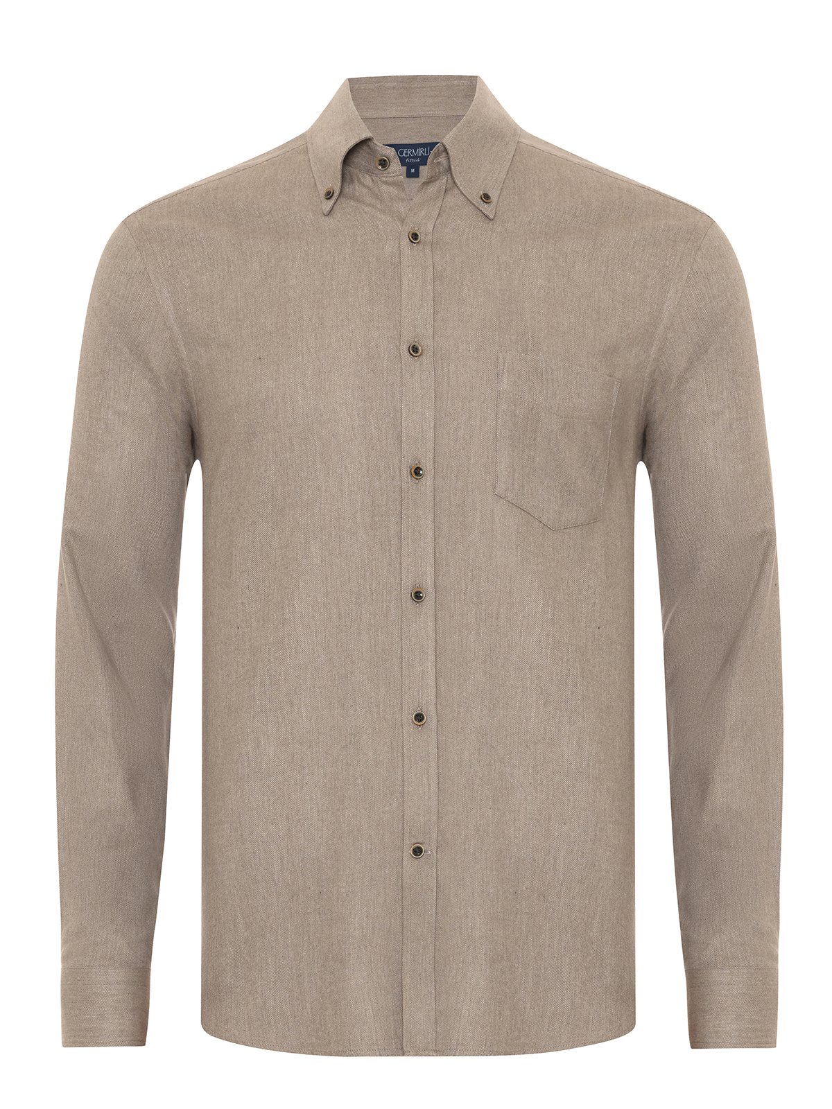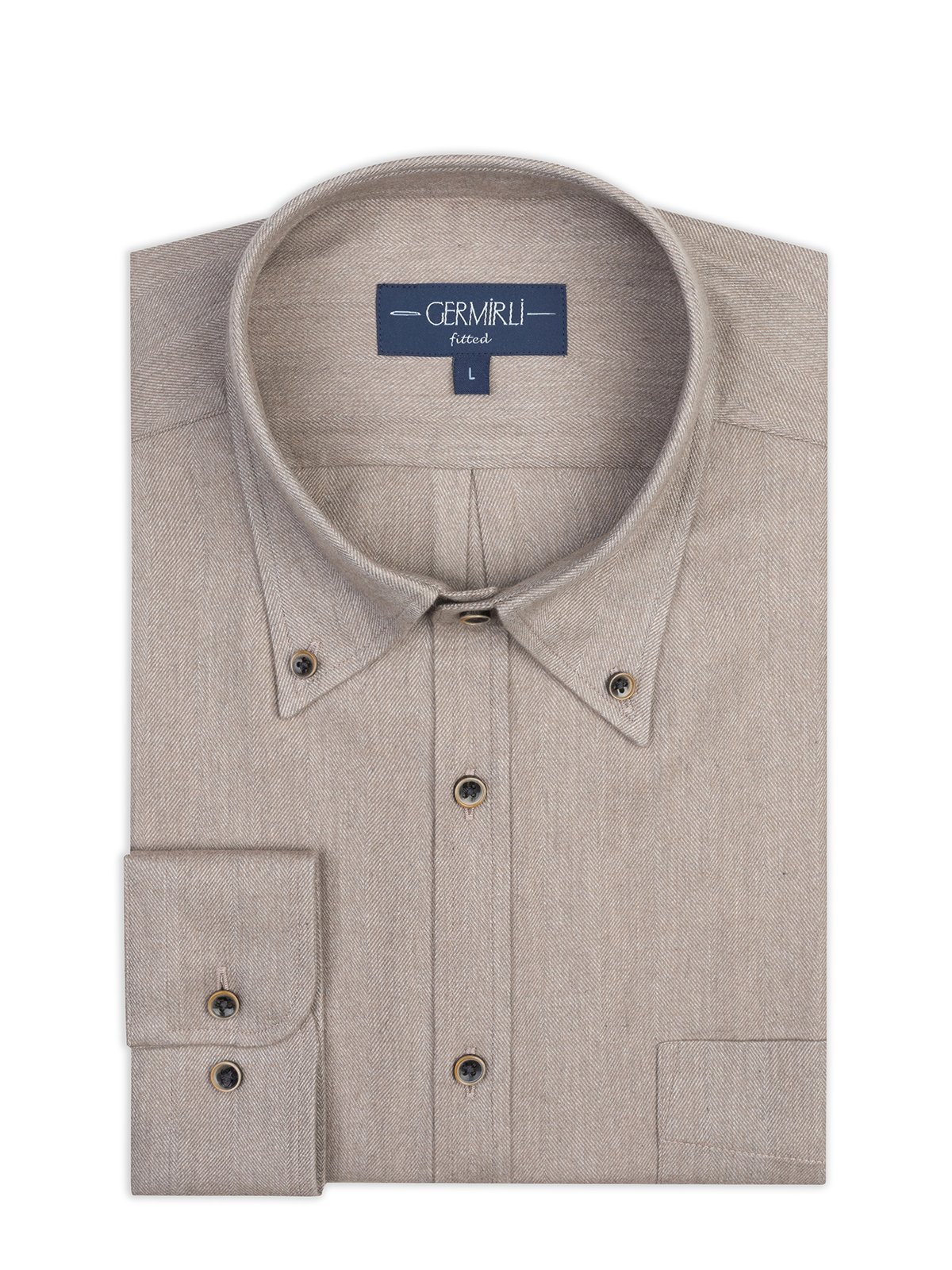Germirli Albini Apres Ski Bej Balıksırtı Tailor Fit Düğmeli Yaka Lyocell Pamuk Flanel Gömlek