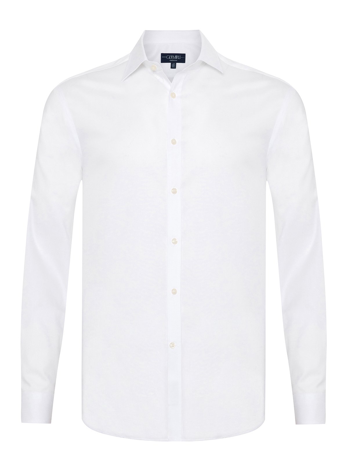 Germirli Albini Beyaz Exclusive Piumino Piquet 100 Klasik Yaka Tailor Fit Pamuk Gömlek