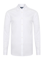 Germirli Albini Beyaz Twill Relax Formula Exclusive Tailor Fit Düğmeli Yaka Pamuk Gömlek