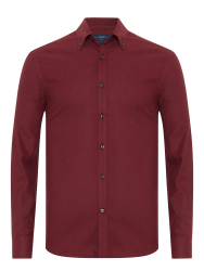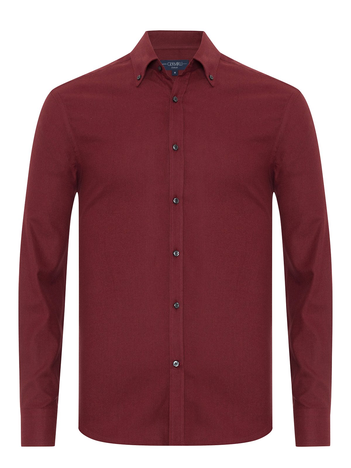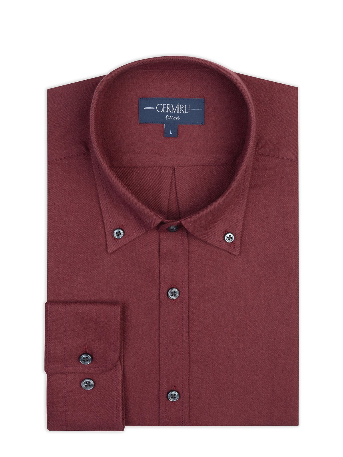 Germirli Albini Bordo Tailor Fit Düğmeli Yaka Organik Pamuk Flanel Gömlek