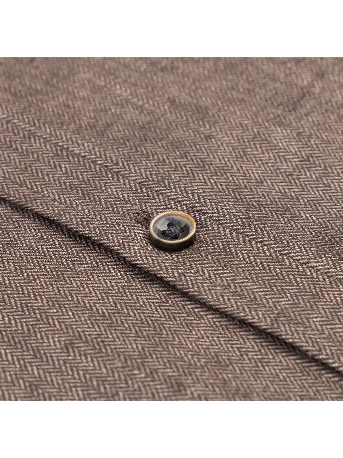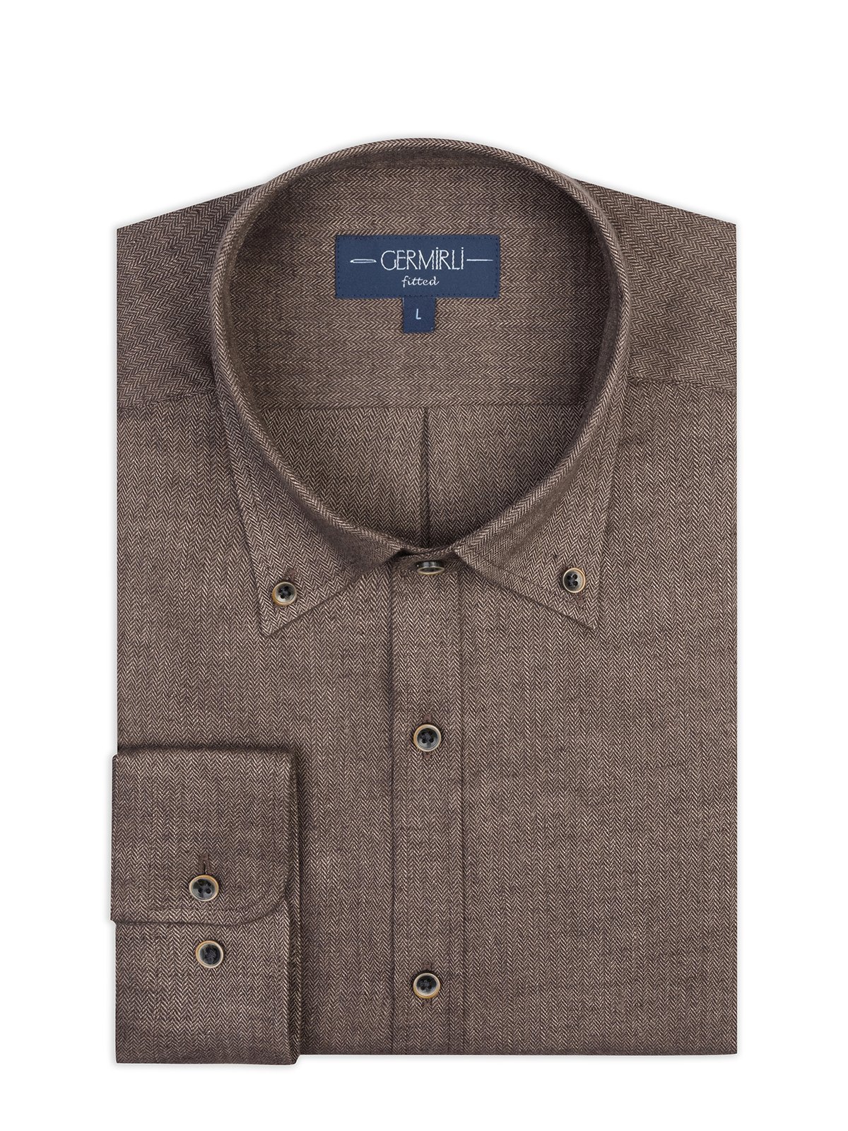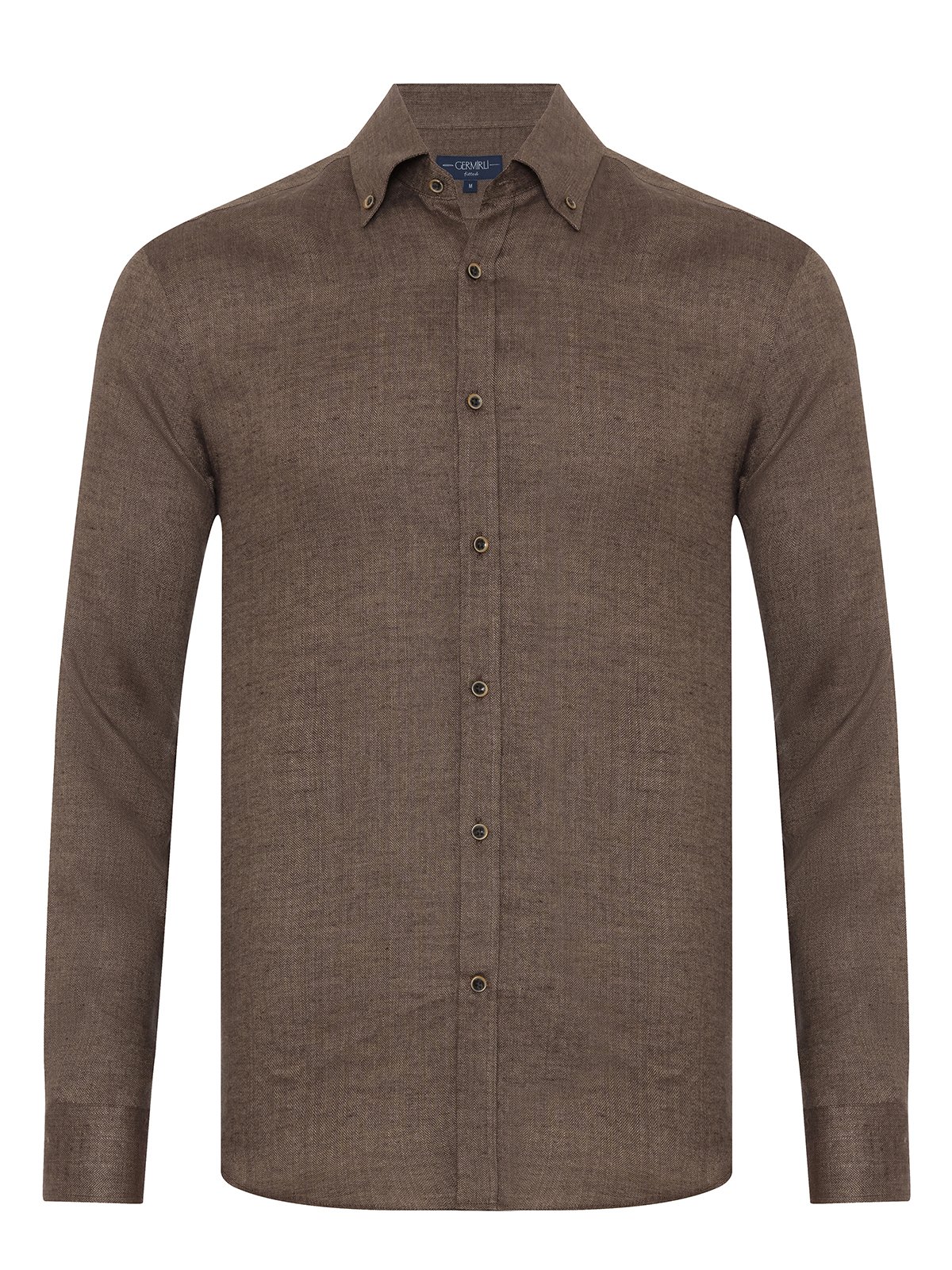 Germirli Albini Kahverengi Balıksırtı Düğmeli Yaka Tailor Fit Keten Yün Gömlek