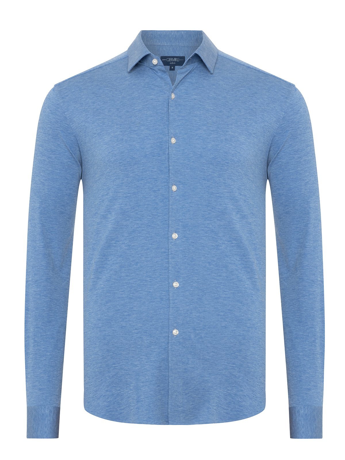 Germirli Albini Mavi Melanj 4Flex Formula Active Pamuklu Slim Fit Gömlek