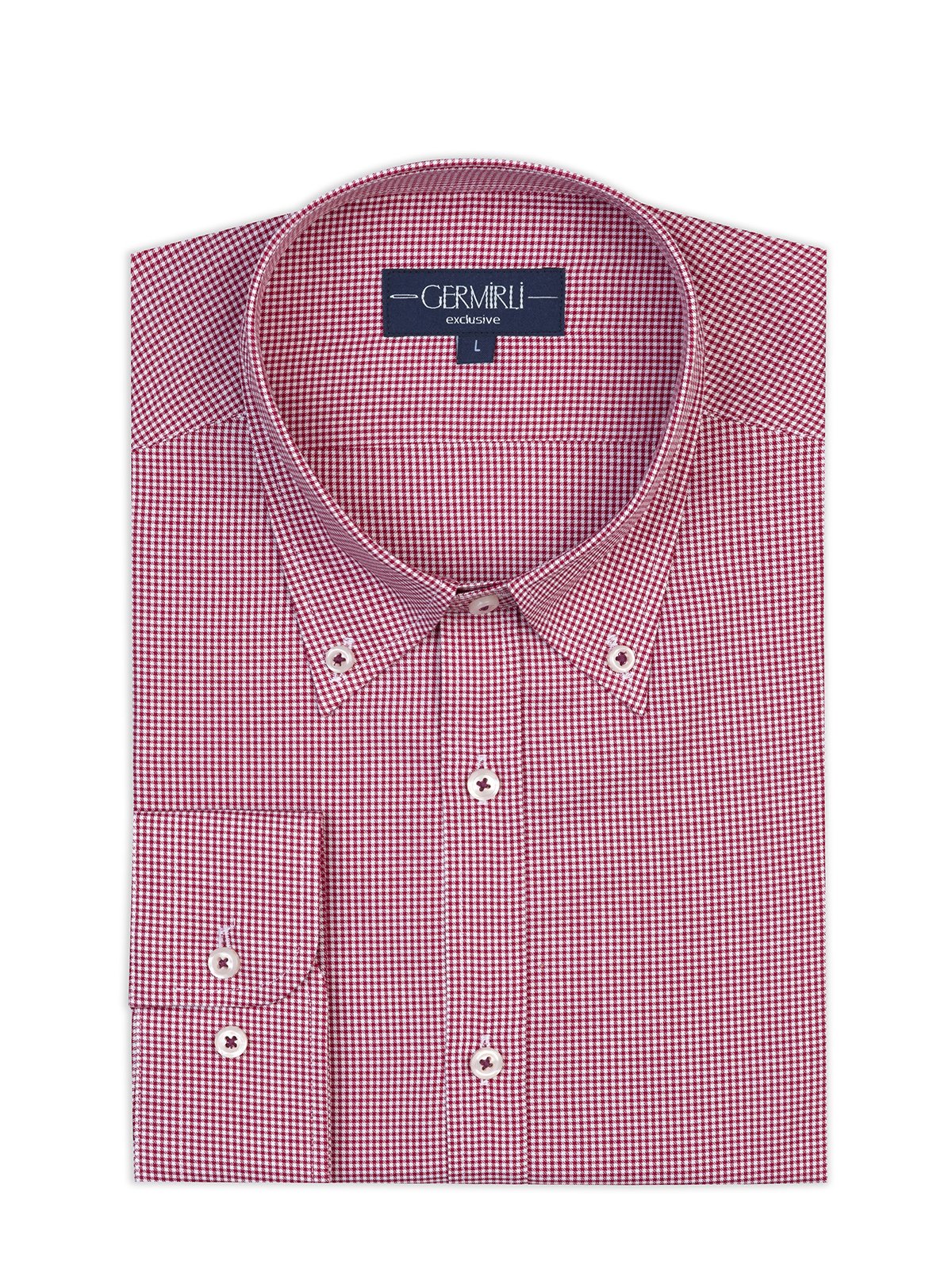 Germirli Albini Relax Formula Bordo Pötikareli Exclusive Tailor Fit Düğmeli Yaka Pamuk Gömlek