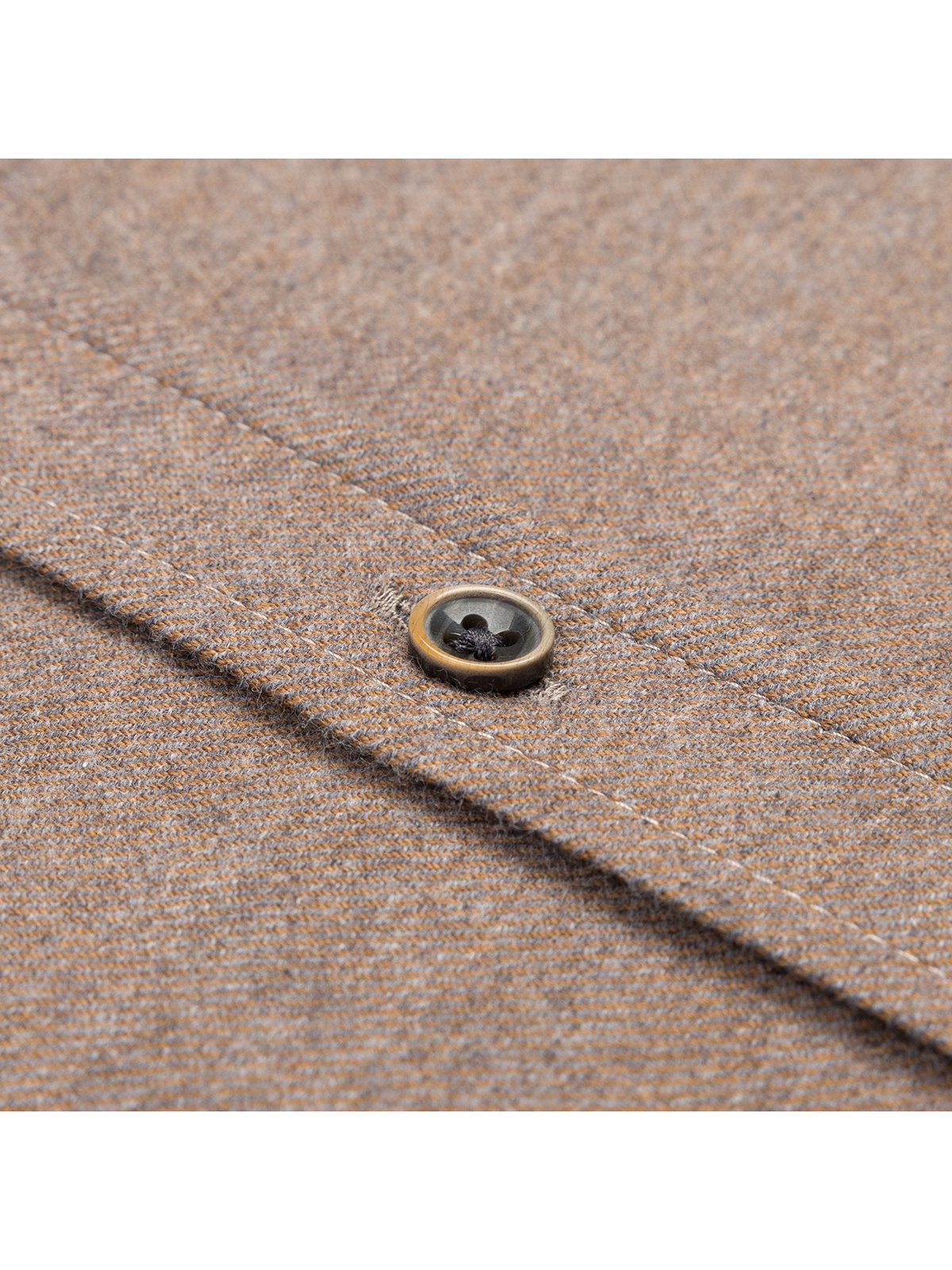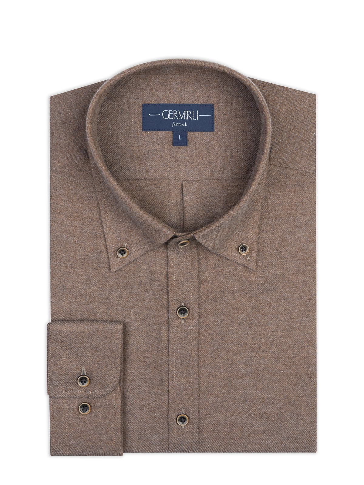 Germirli Albini Kahverengi Balıksırtı Düğmeli Yaka Tailor Fit Keten Yün Gömlek