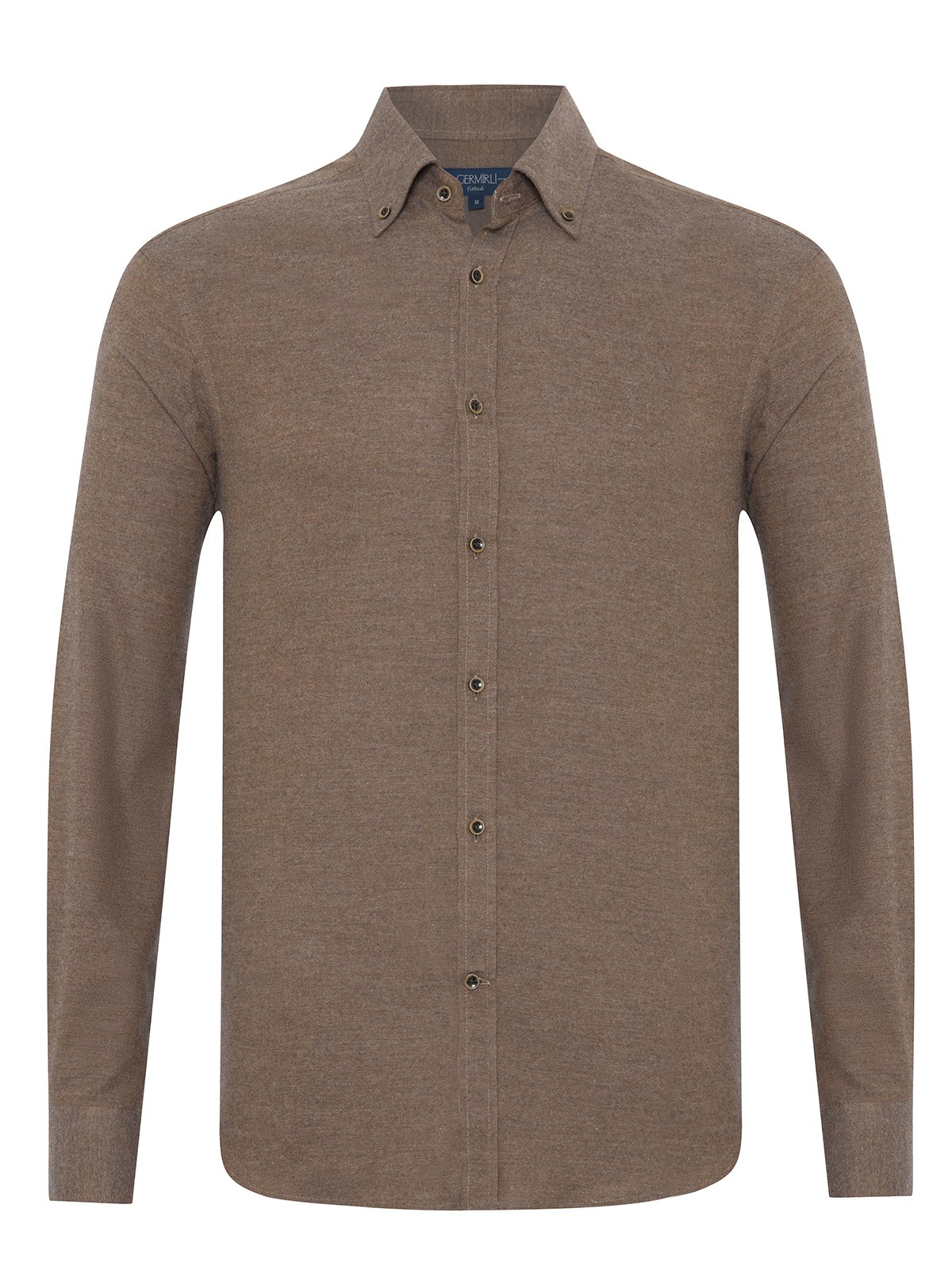 Germirli Albini Vizon Tailor Fit Düğmeli Yaka Organik Pamuk Flanel Gömlek