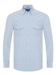 Germirli Light Blue Hidden Button Collar Flap Pocket Tailor Fit Sport Oxford Men's Shirt