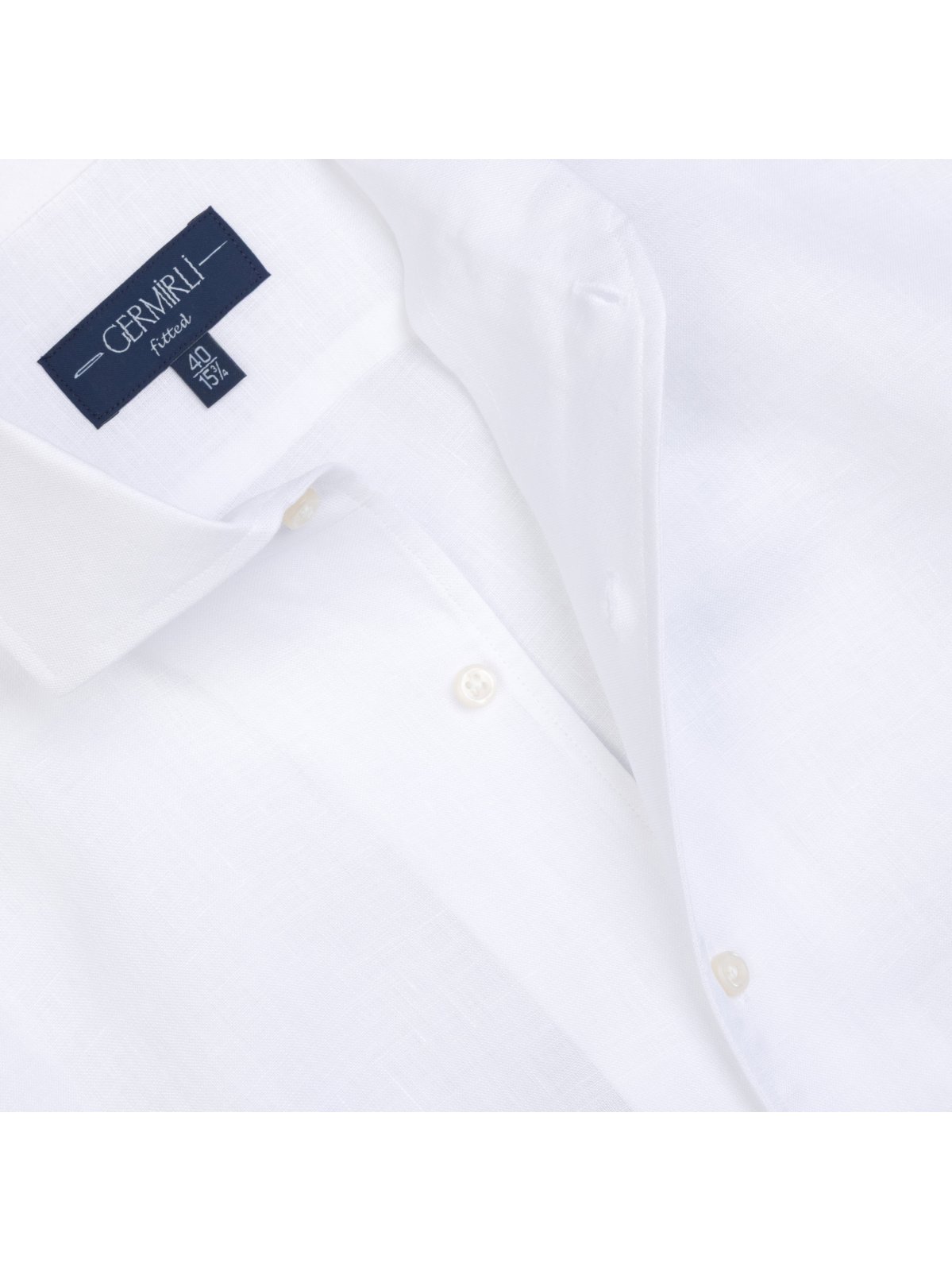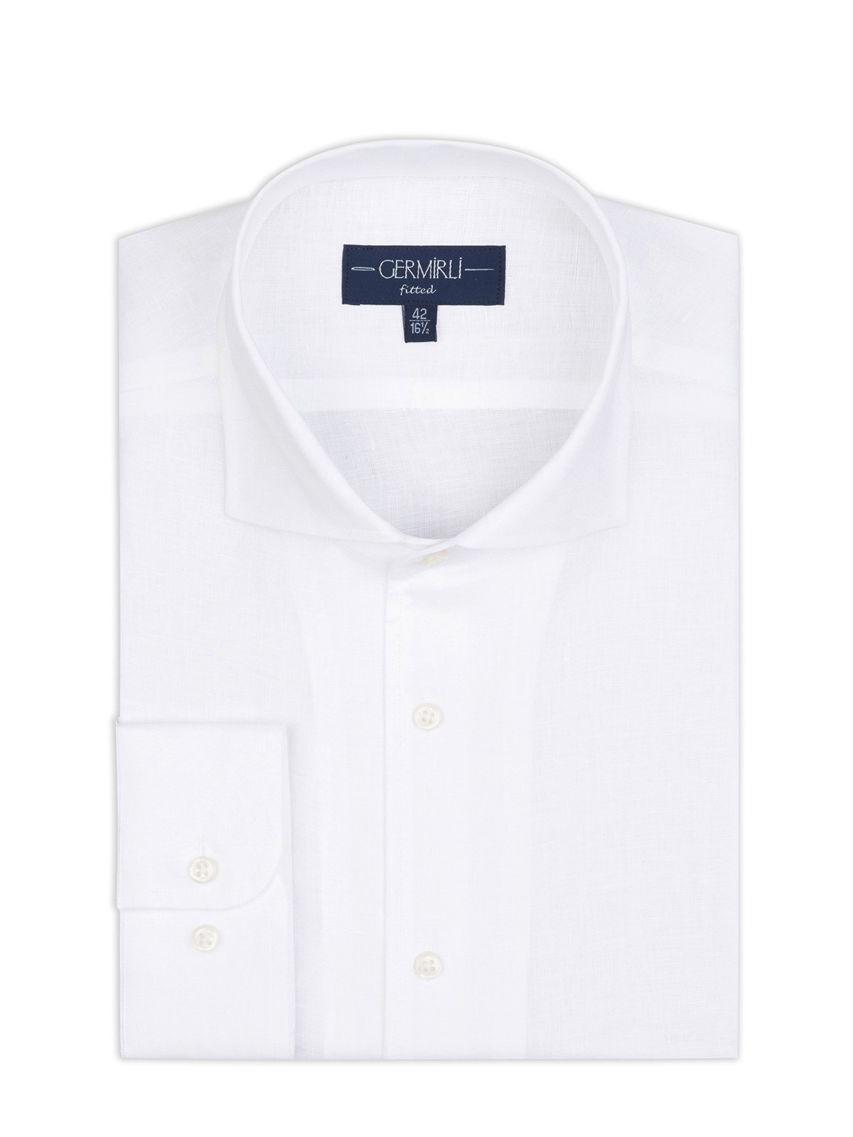 Germirli Beyaz Nevapas Lapel Yaka Keten Gömlek