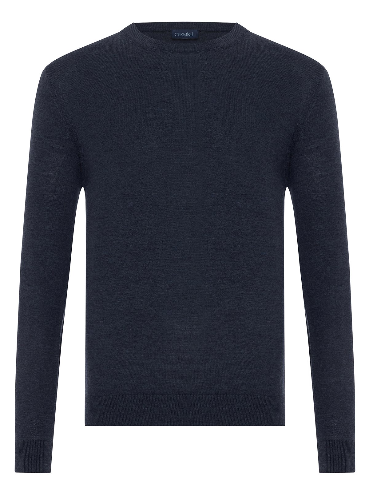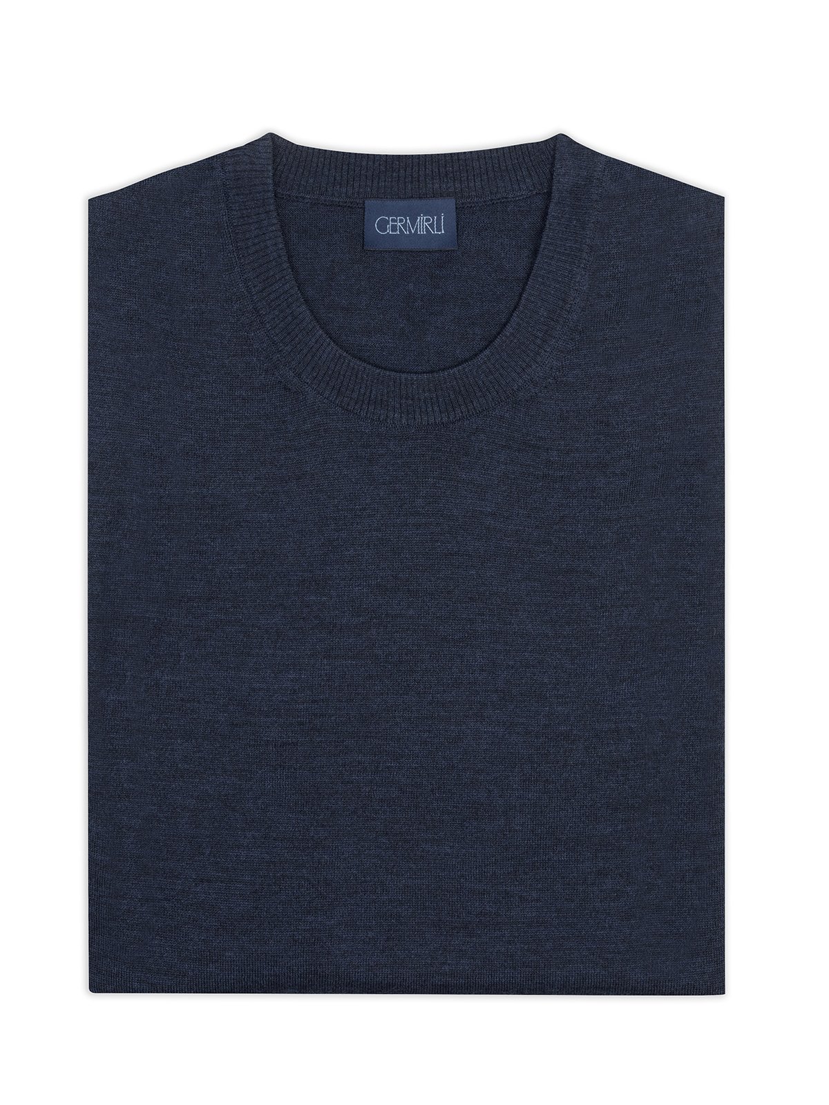 Germirli Bisiklet Yaka Lacivert Melanj Regular Fit Extra Fine Yün Erkek Triko