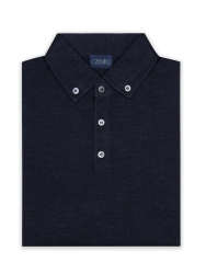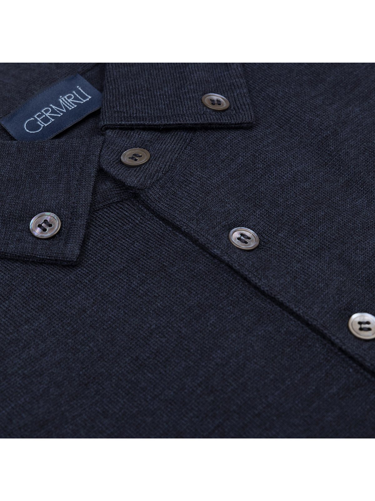 Germirli İndigo Mavi Düğmeli Gömlek Yaka Regular Fit Extra Fine Yün Triko