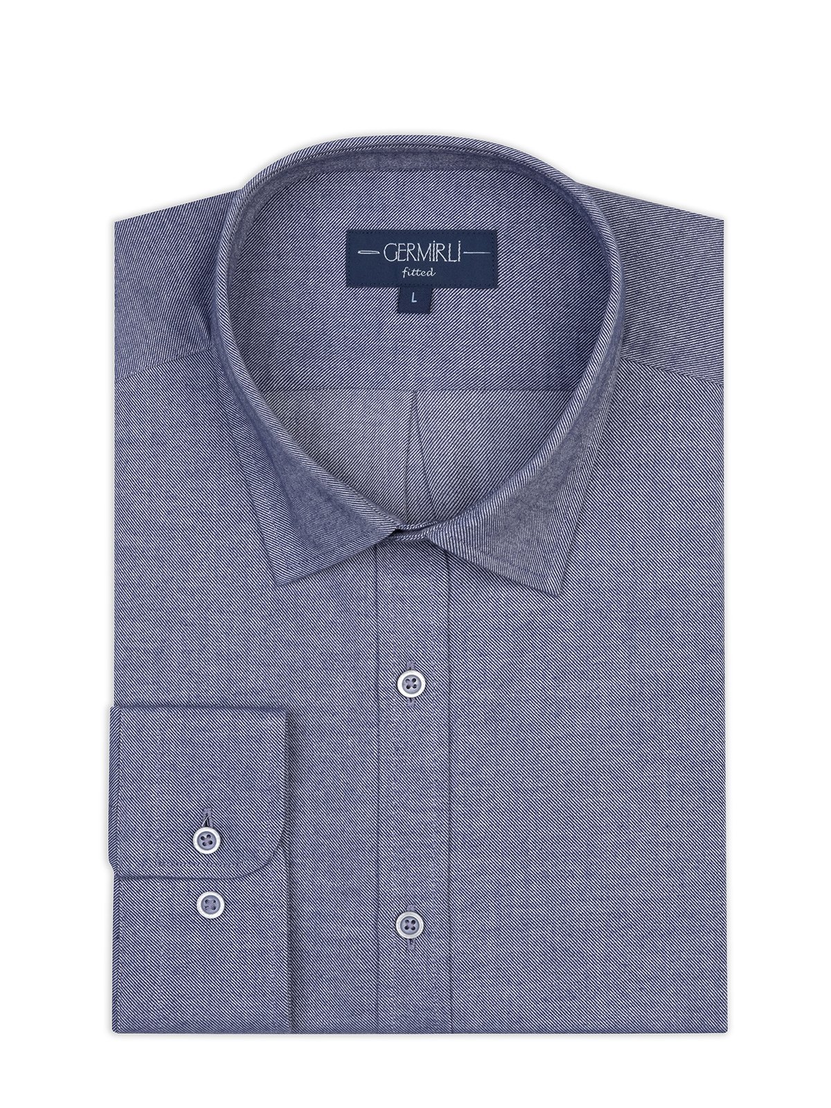 Germirli Lacivert Diagonal Desen Flanel Tailor Fit Soft Yaka Pamuk Gömlek