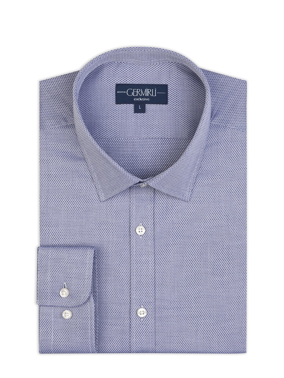 Germirli Mavi Exclusive Klasik Yaka Tailor Fit 120s Pamuk Gömlek