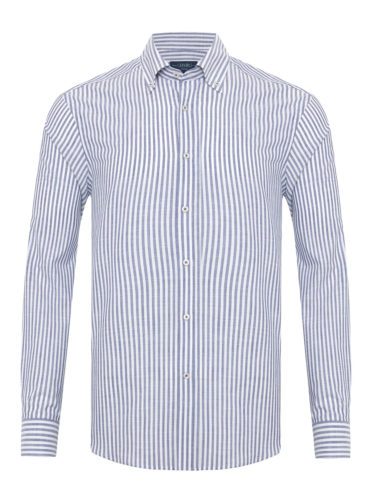 Germirli Lacivert Beyaz Çizgili Albiate Düğmeli Yaka Tailor Fit İnce Pamuk Gömlek