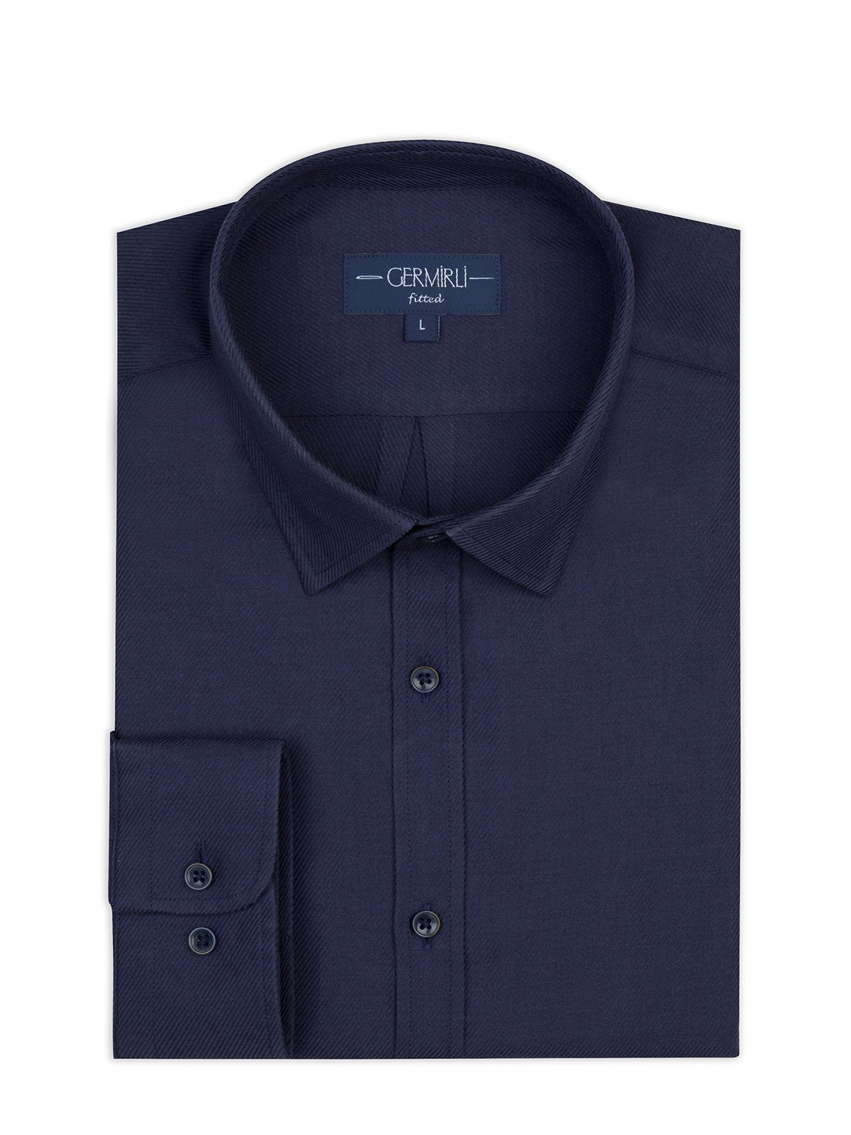 Germirli Lacivert Diagonal Desen Flanel Tailor Fit Soft Yaka Pamuk Gömlek