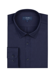 Germirli Albini Lacivert Tailor Fit Düğmeli Yaka Organik Pamuk Flanel Gömlek