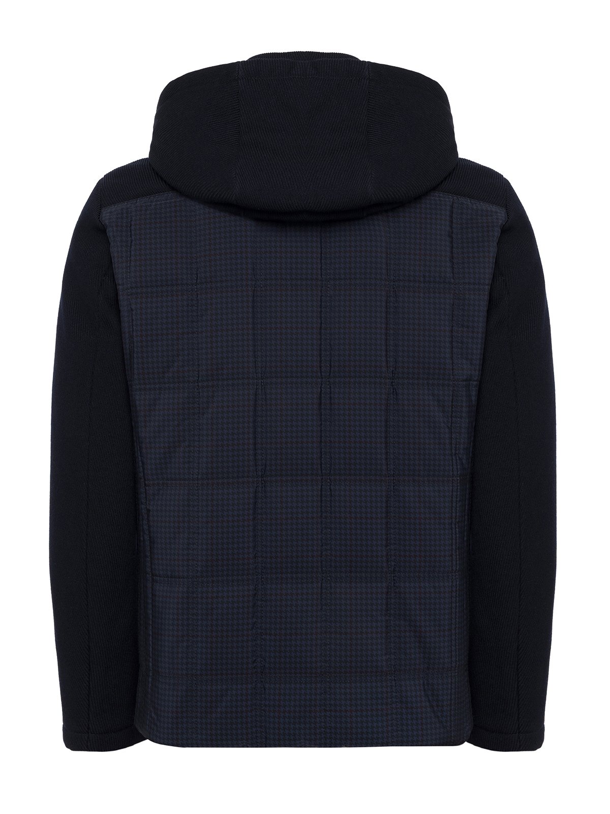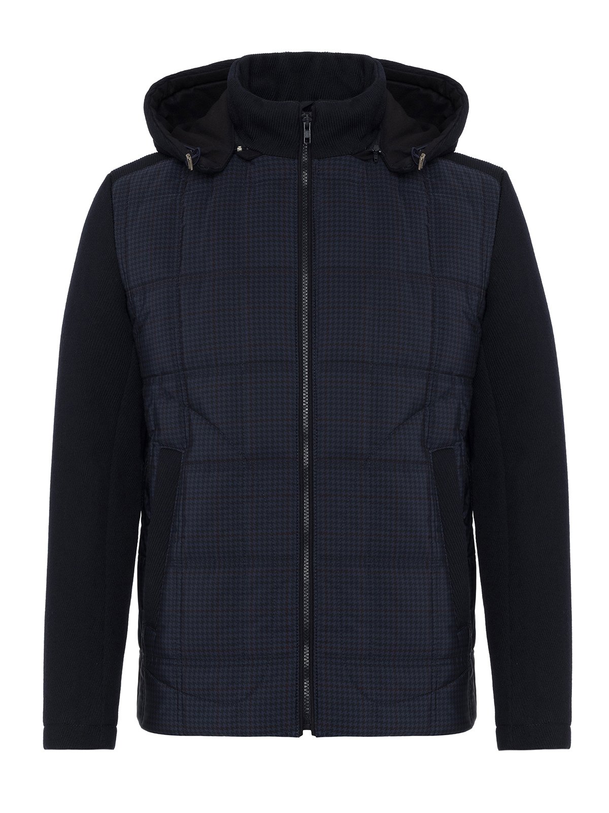 Germirli Lacivert Glencheck Desenli Kapişonlu Triko Kollu Mont