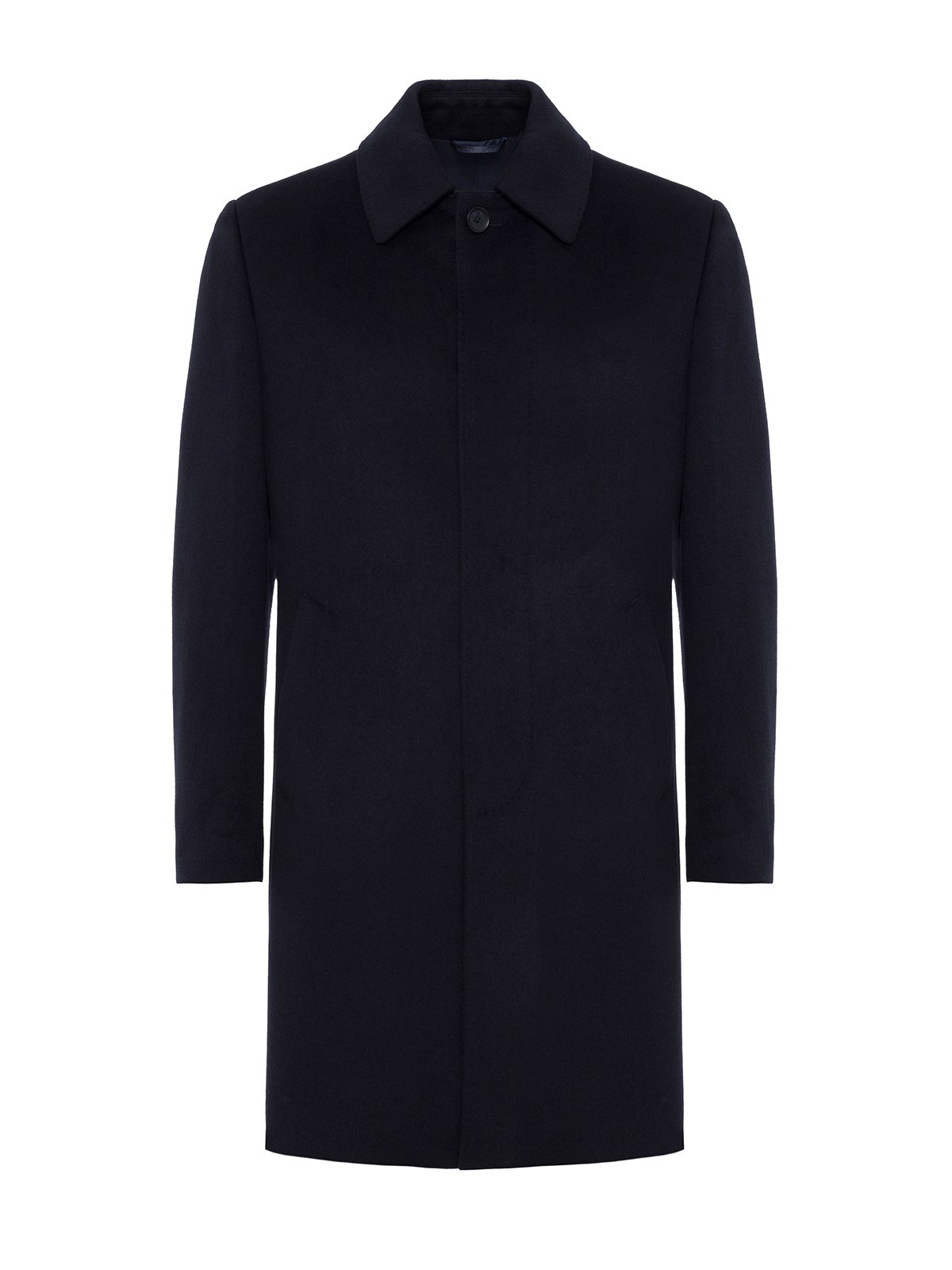 Germirli Lacivert Punto Dikişli Yünlü Palto