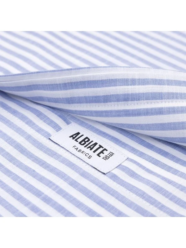 Germirli Mavi Beyaz Çizgili Albiate Düğmeli Yaka Tailor Fit İnce Pamuk Gömlek