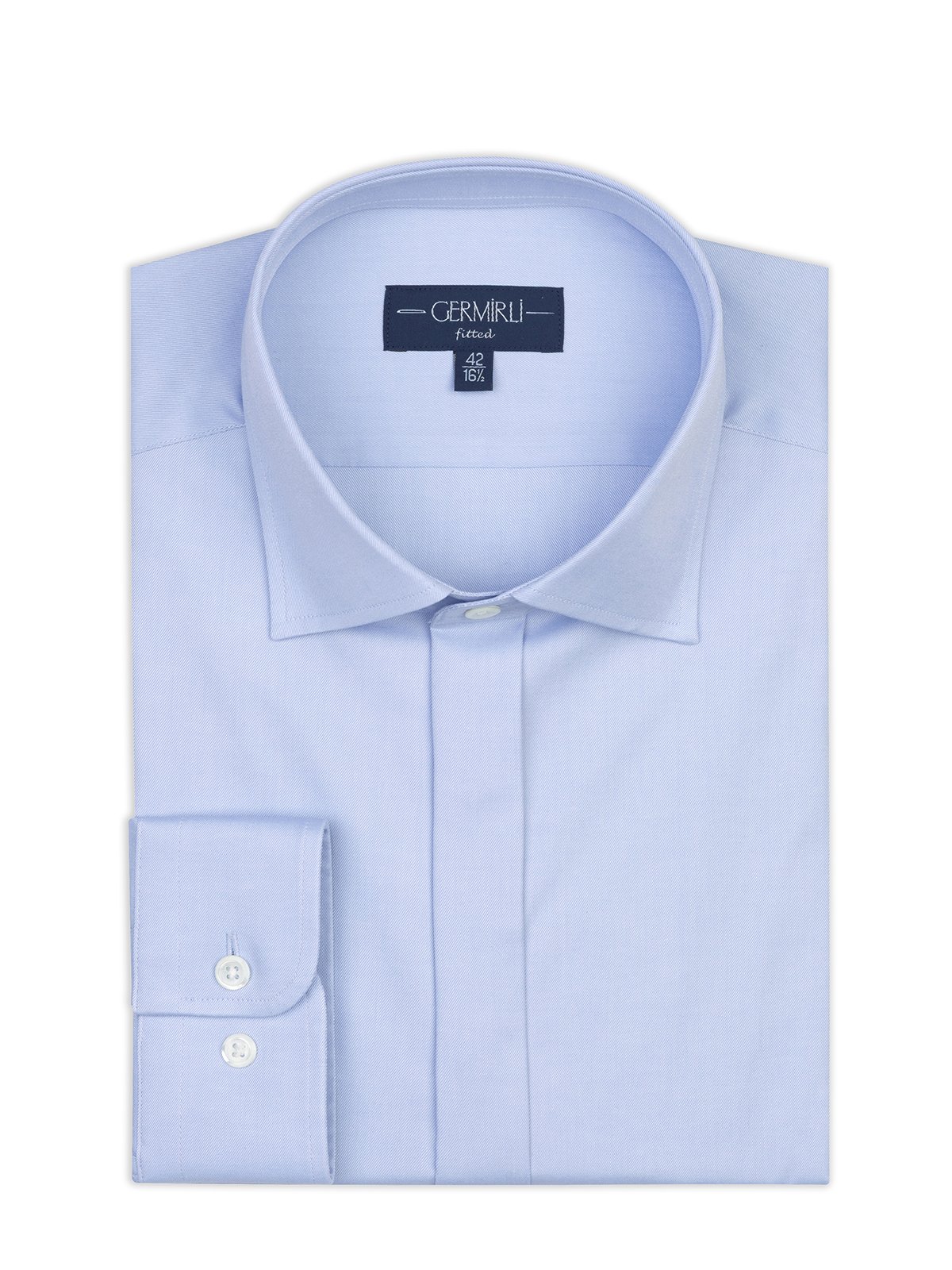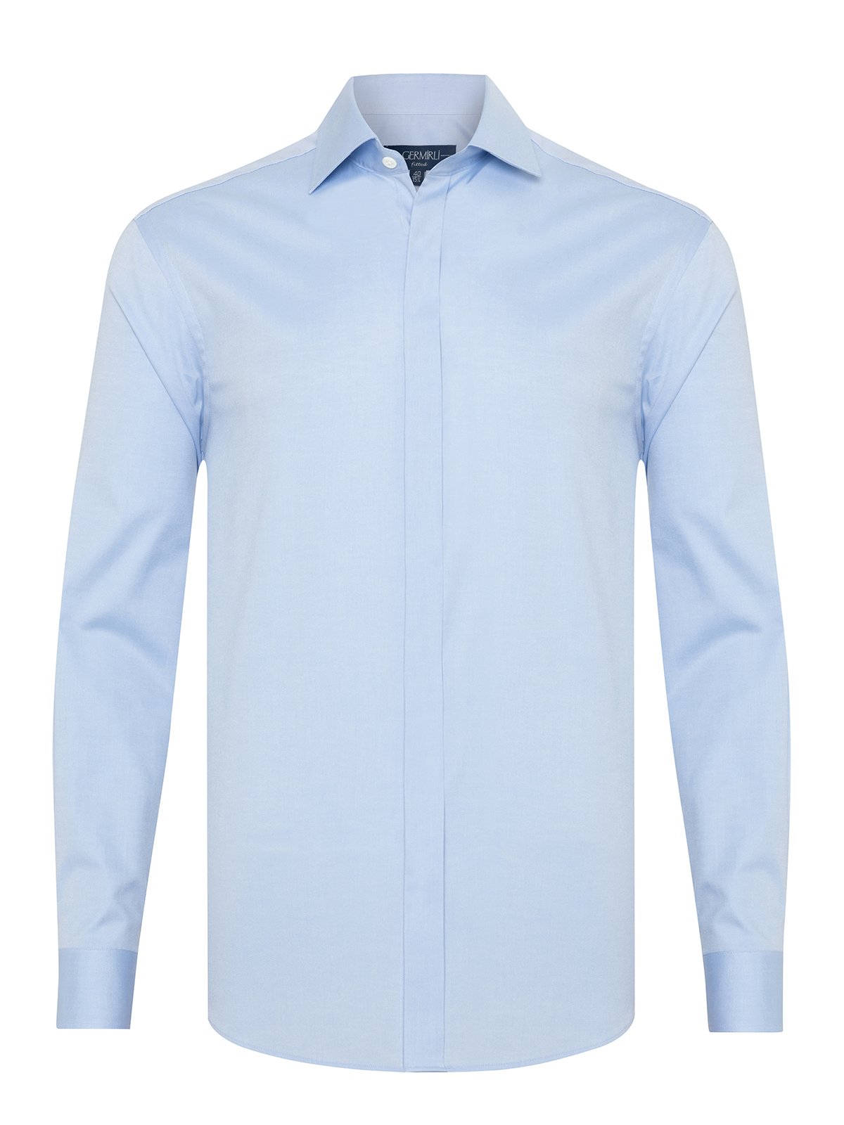 Germirli Mavi Gizli Pat Tailor Fit Klasik Yaka Pamuk Elastan Gömlek