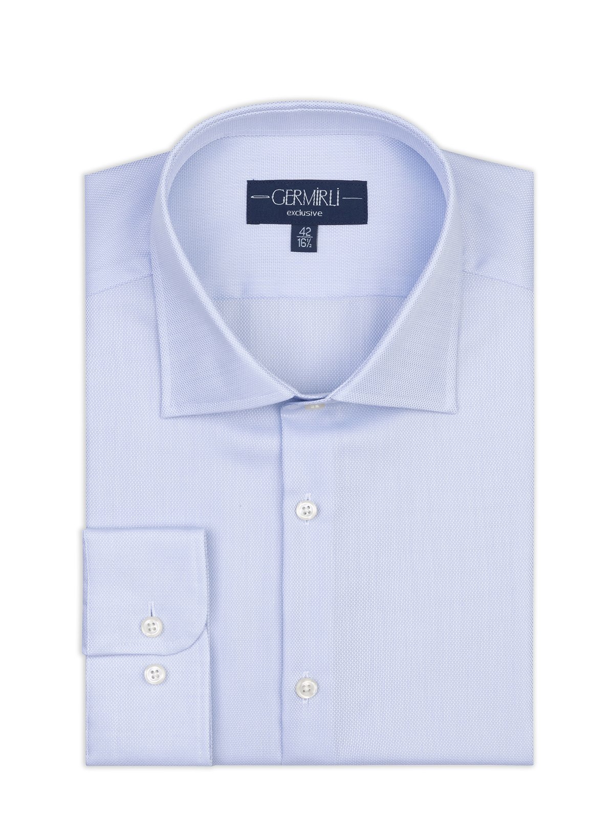 Germirli Albini Mavi Exclusive Piumino Piquet 100 Klasik Yaka Tailor Fit Pamuk Gömlek