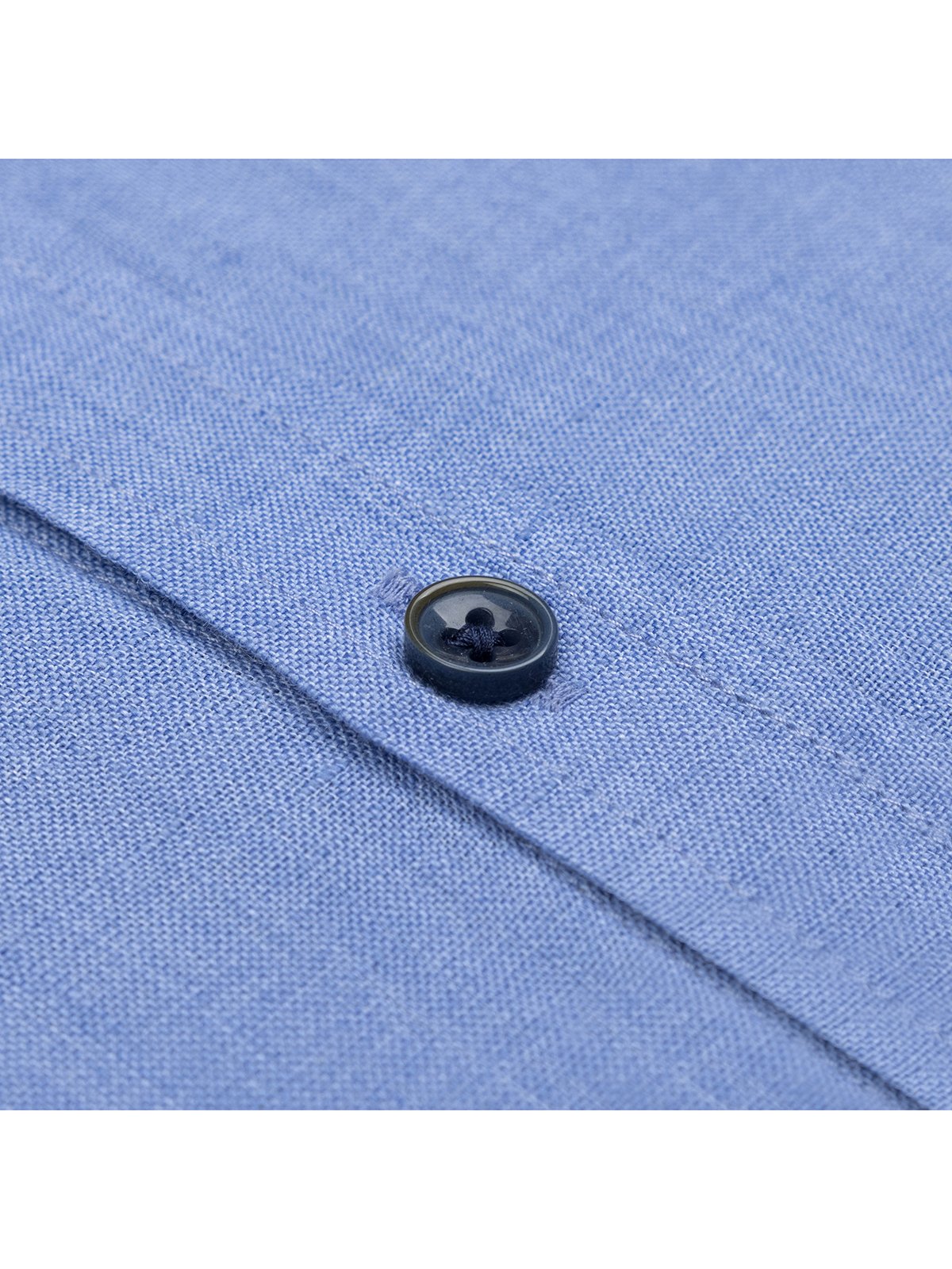 Germirli Mavi Soft Yaka Tailor Fit Kısa Kol Keten Gömlek