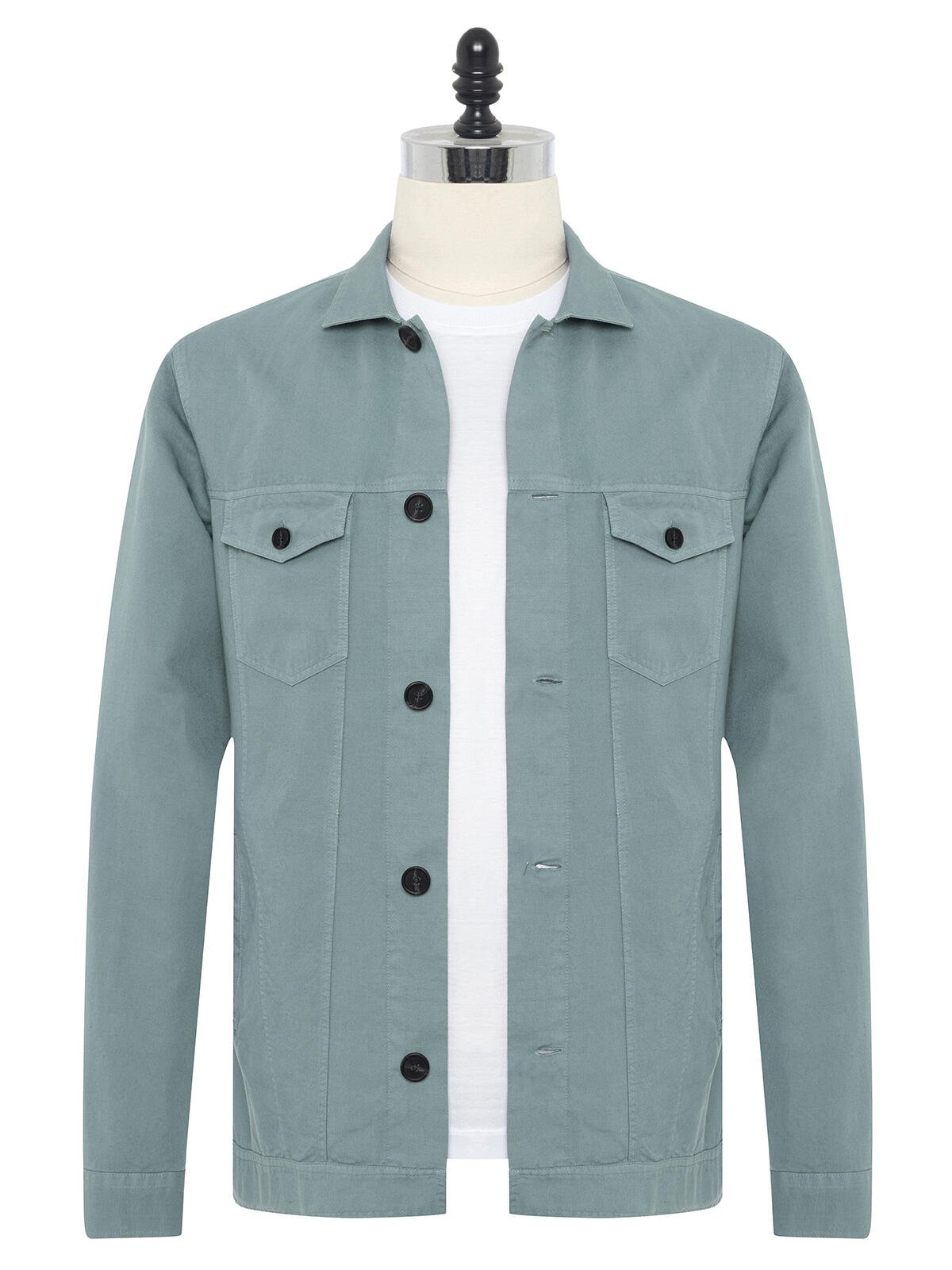 Germirli Mineral Yeşili Vintage Fileto Cepli Pamuk Keten Ceket Gömlek